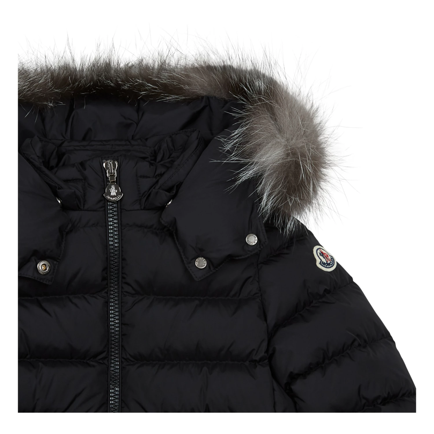 - Contrasting logo, Padded outside, Zipped pocket(s), Hood with removable fur, Warm and comfortable