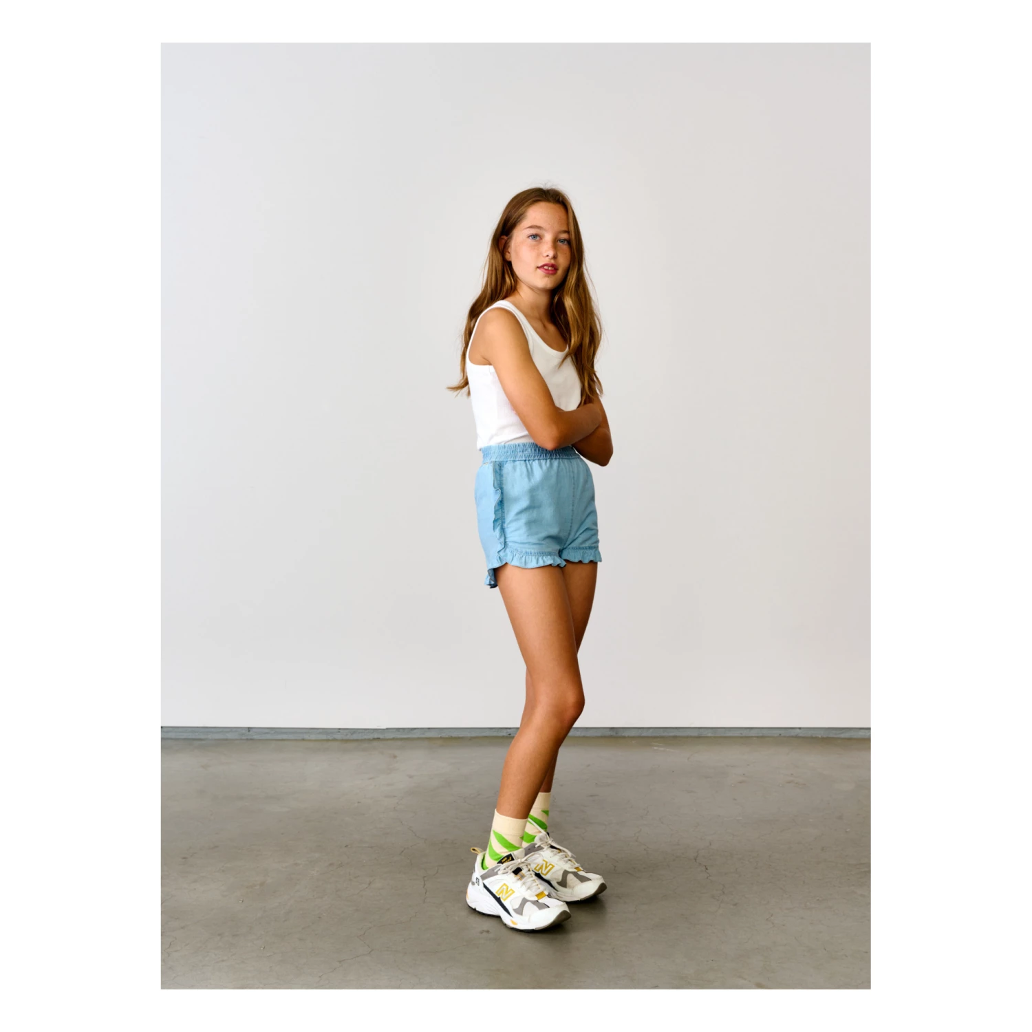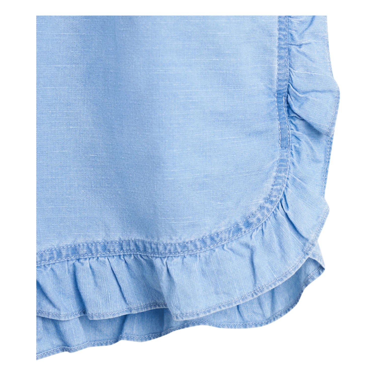 - Rounded at the sides, Flowy, Lightweight and comfortable, Frilled edges, Contrasting top stitch, Elasticated waist, Sewn-in brand label