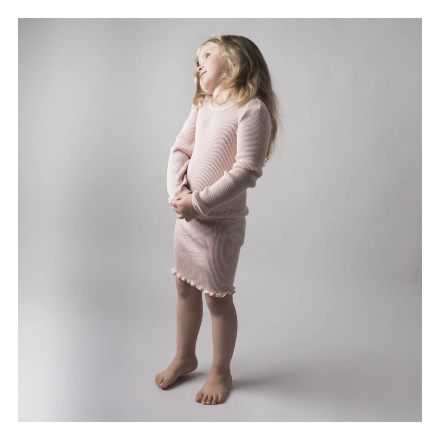 - Ribbed, Soft, Crew neck, Long sleeves, Frilled edges, Top stitched edges, Sewn-in brand label, Comfortable
