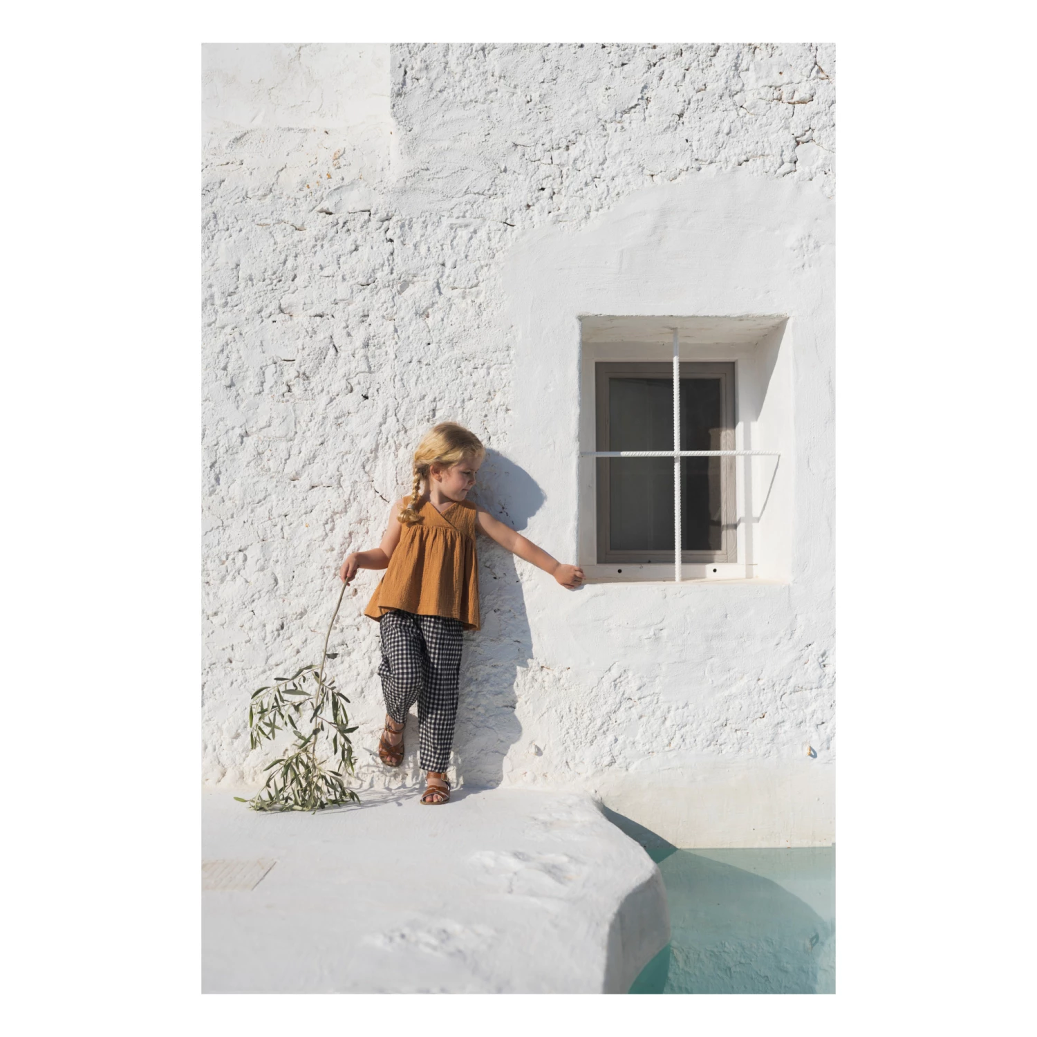 - Button(s) at the waist, Wooden button(s), Gingham print