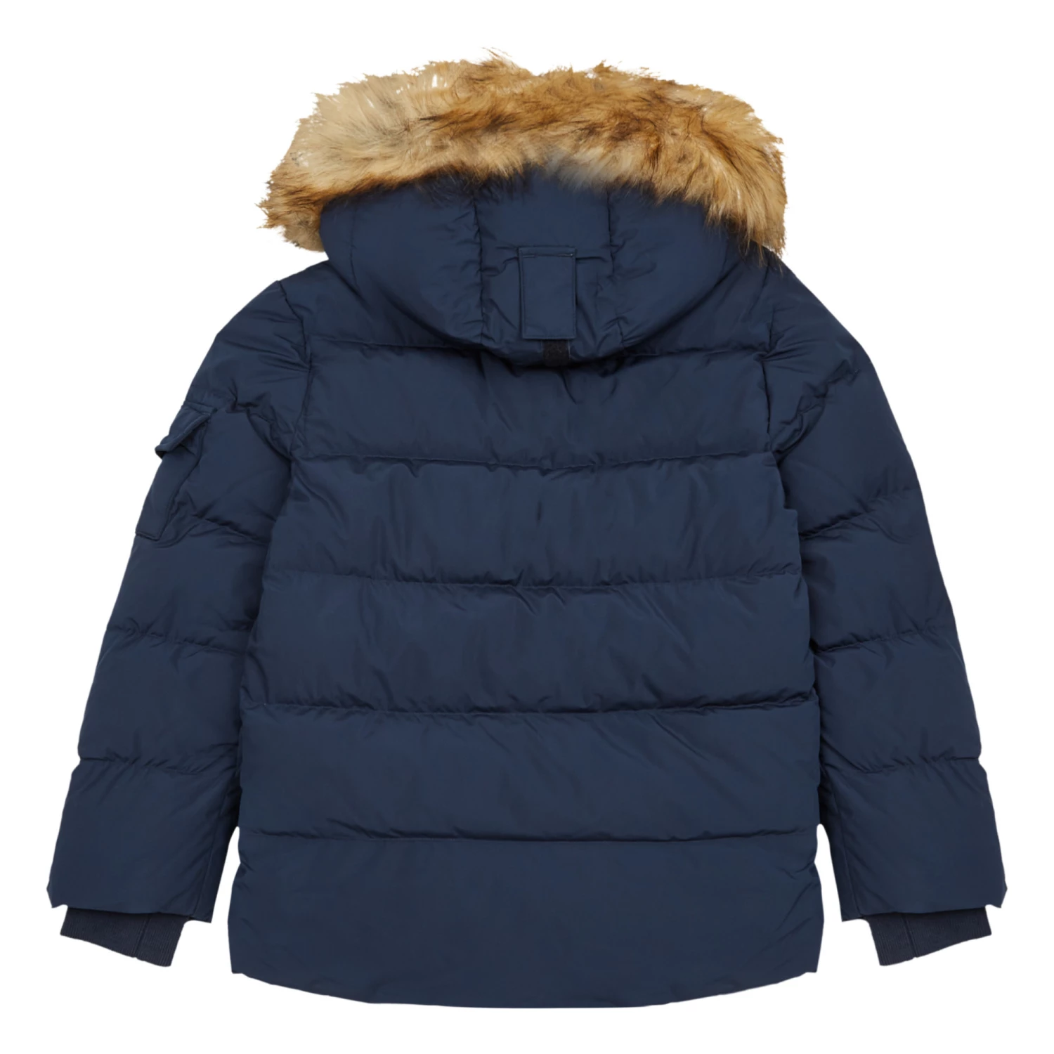 - Interior zipped pocket, Adjustable waistband, Long sleeves, Press stud flap pocket(s), Elastic cuffs, Side pockets, Logo on the arm, Hood with removable fur