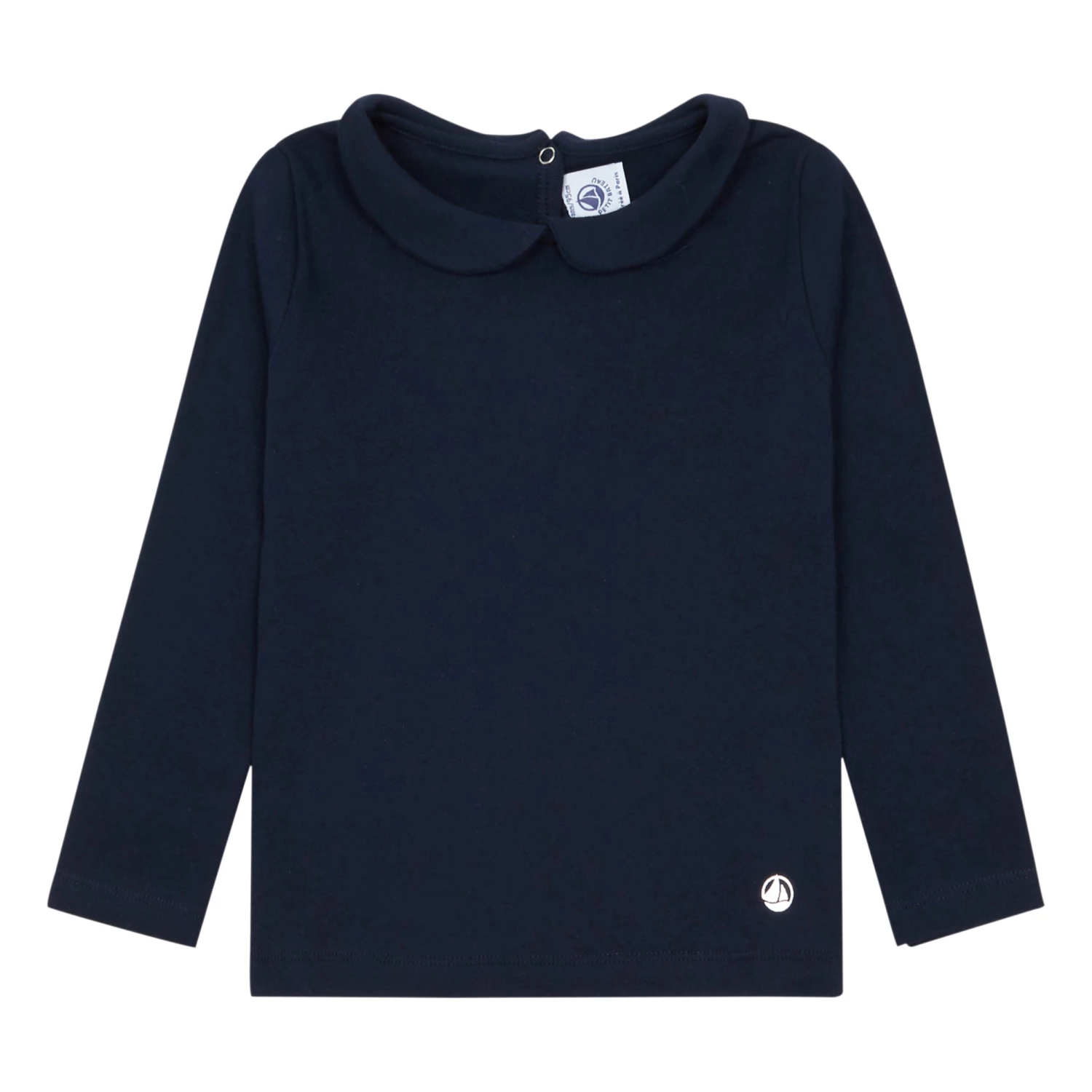 - Details : Block colour, Peter pan collar, Long sleeves, Neckline with snap fasteners