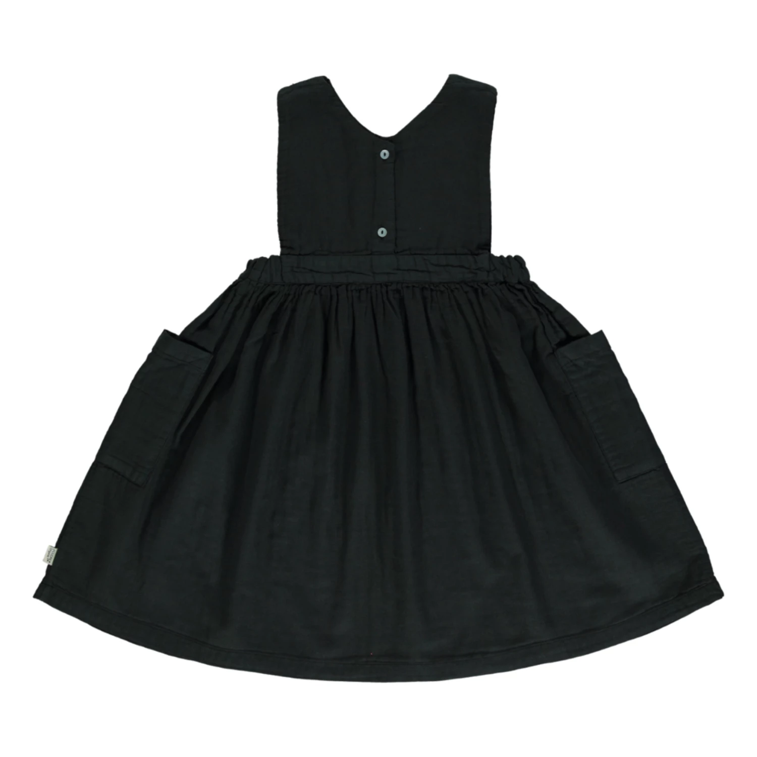 - Details : V neck, Elastic waist, Side pockets, Button back, Open-back, Flared cut, Lightweight and comfortable