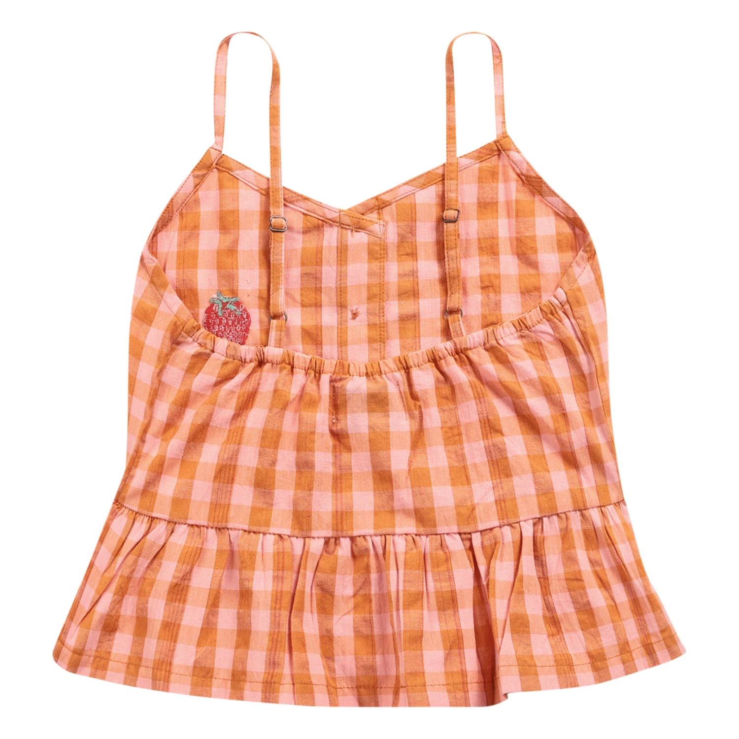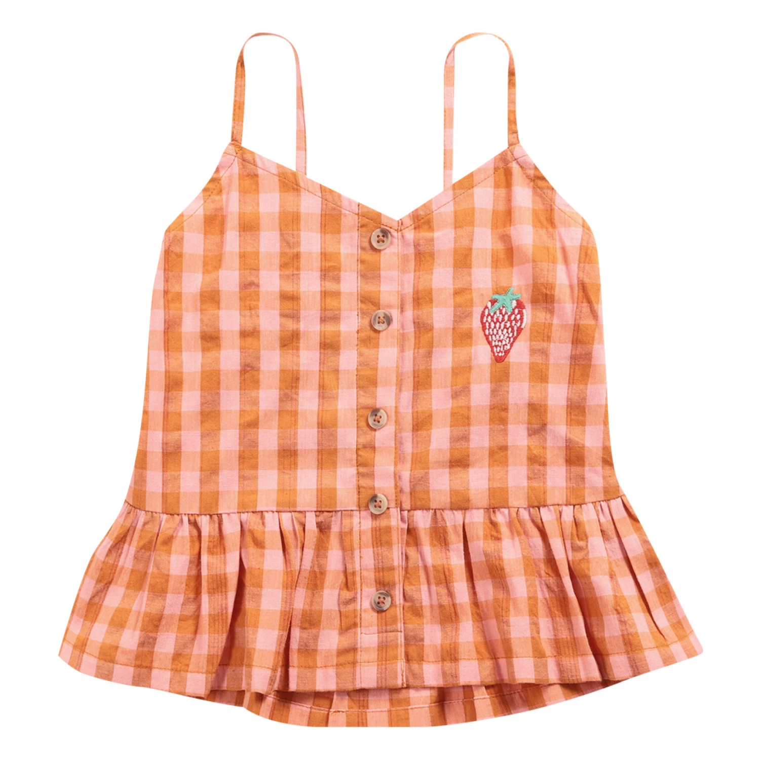 - V neck, Embroidered patch(es), Frilled edges, Thin straps, Buttoned collar