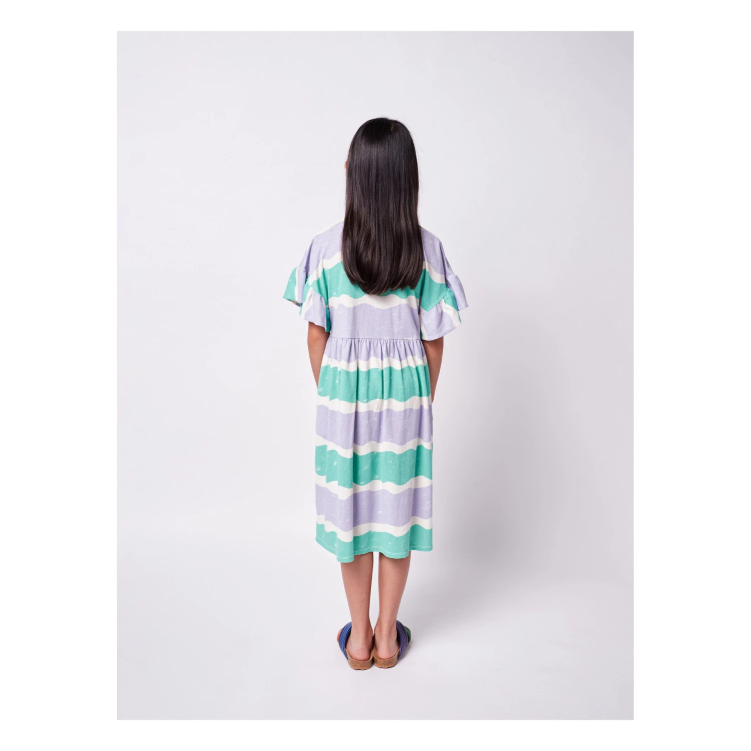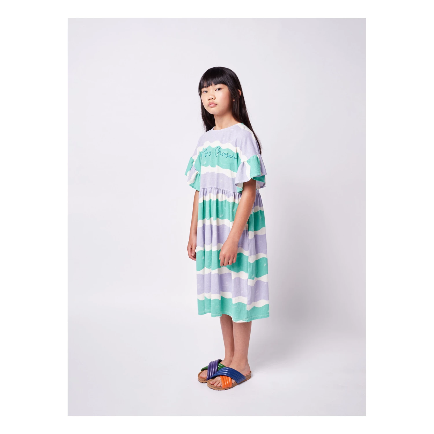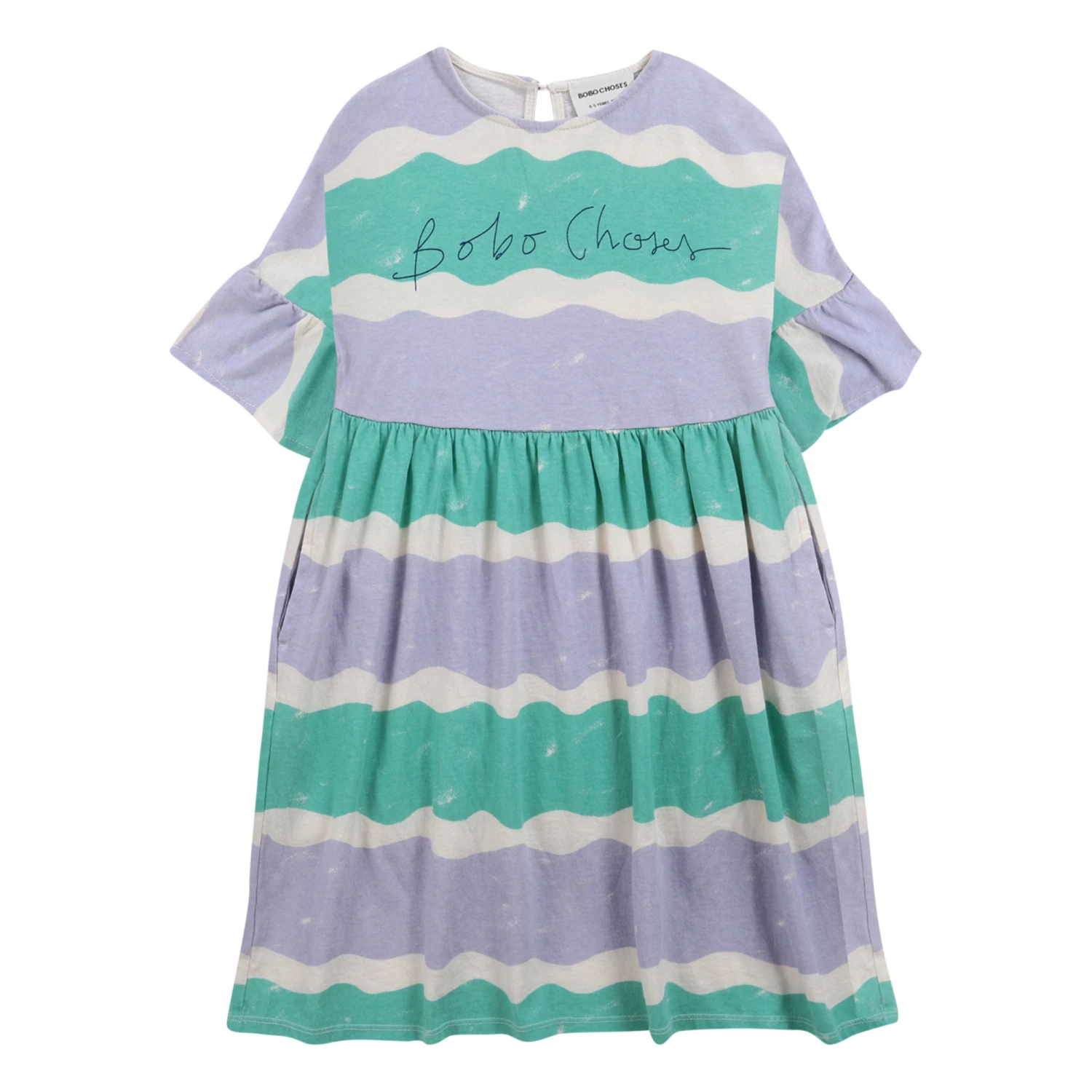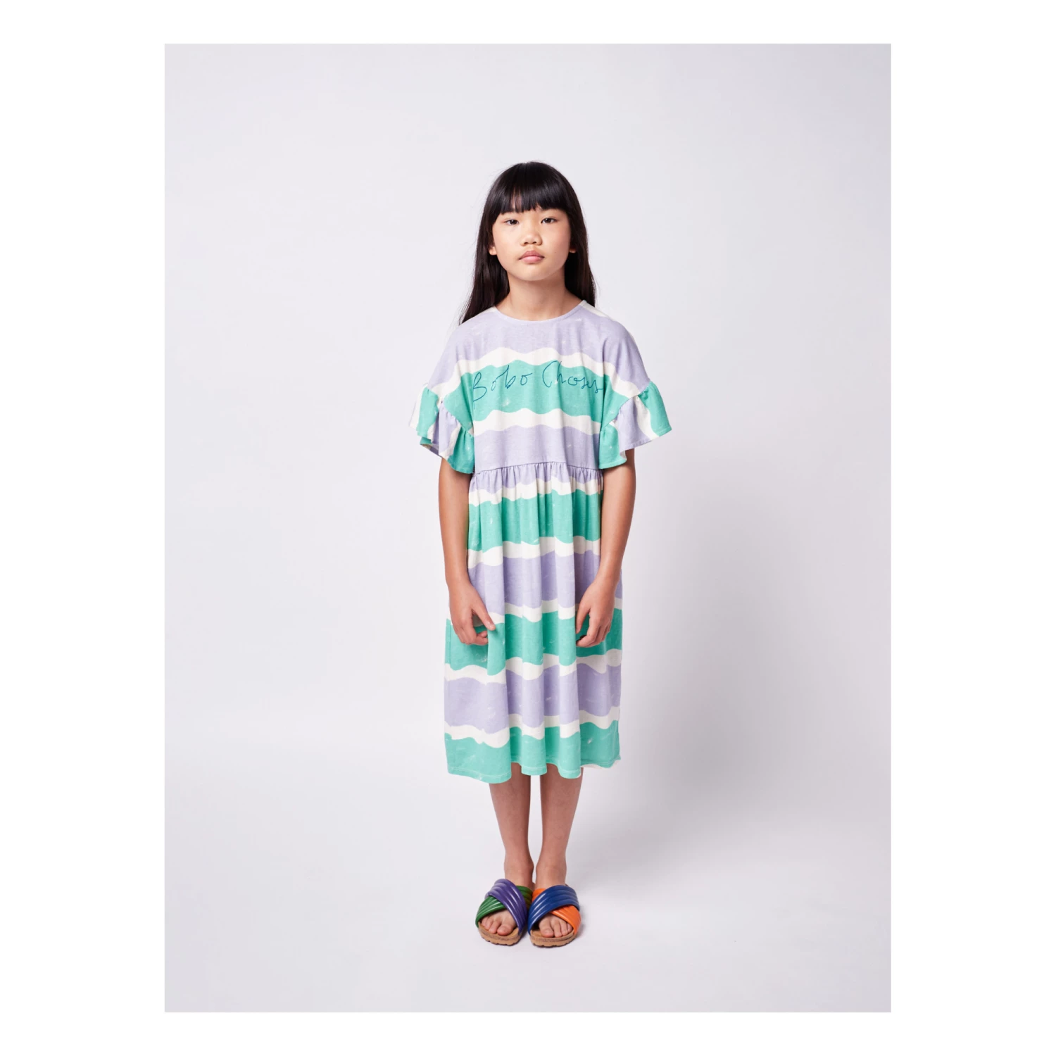 - Low armholes, Crew neck, Flowy, Contrasting logo, Short sleeves, Knife pleat(s), Print on front, Frilled edges, Gathered at the waist