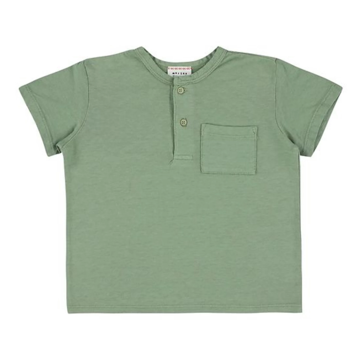 - Crew neck, Top stitched, Short sleeves, Breast pocket(s), Buttoned collar