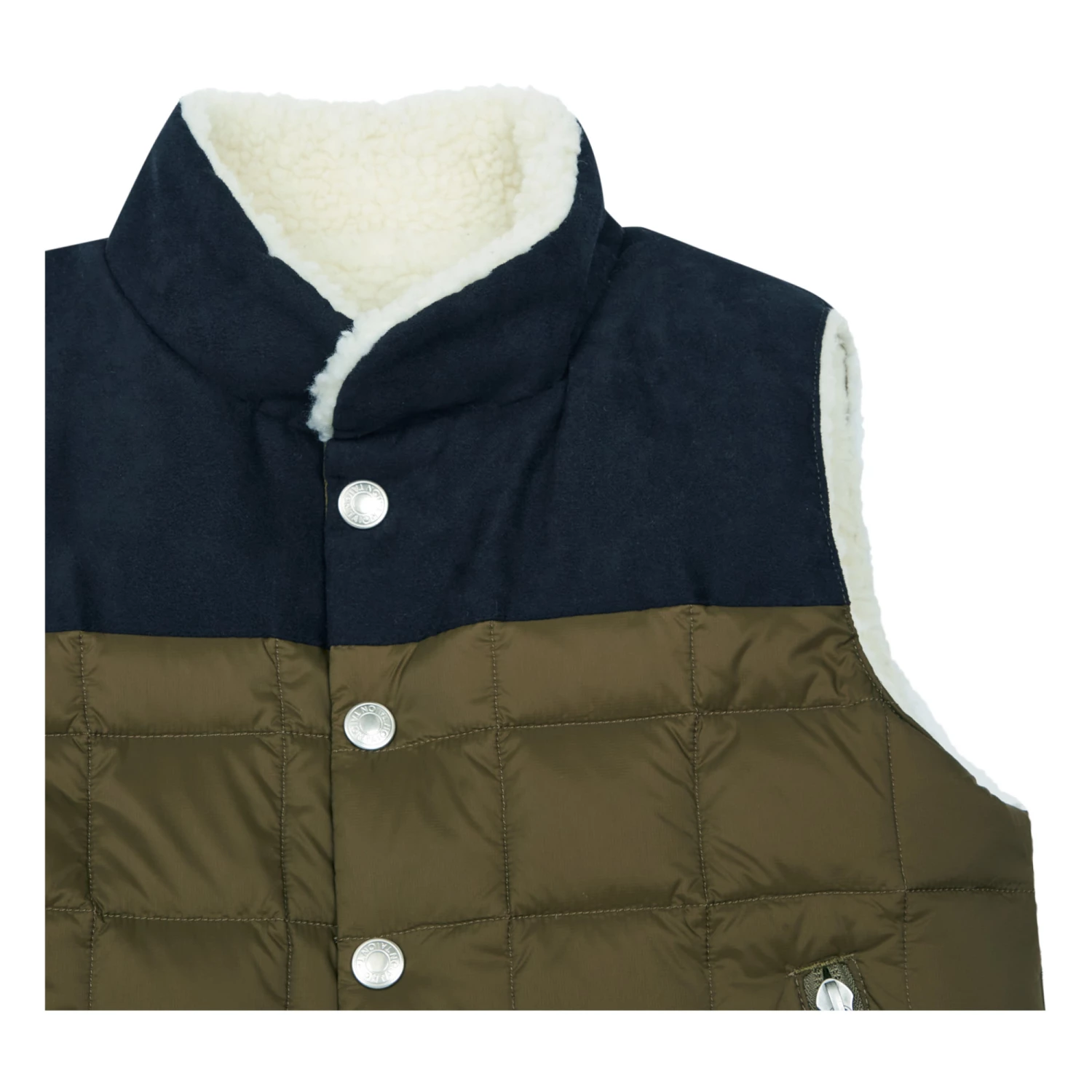 - Sewn-in logo , Soft, Identification tag, Top stitched, Waterproof, Padded inside, Sleeveless, Zipped front pocket, Warm and comfortable, Turtleneck