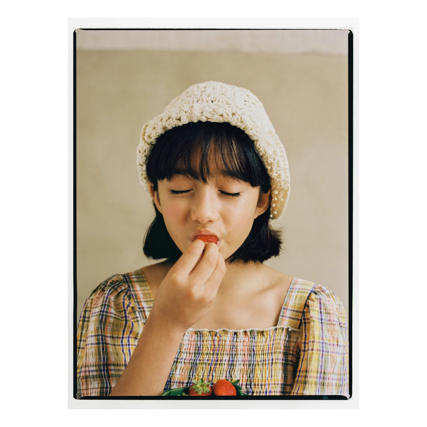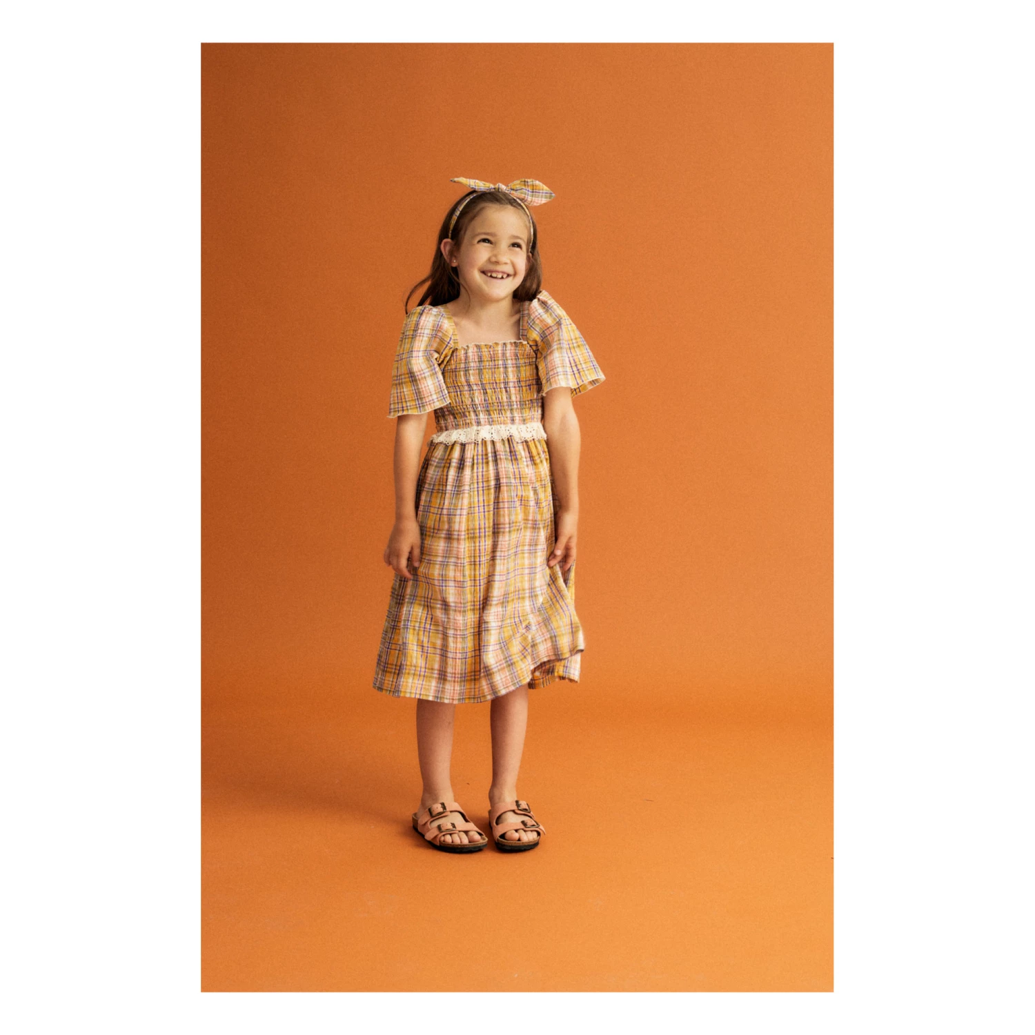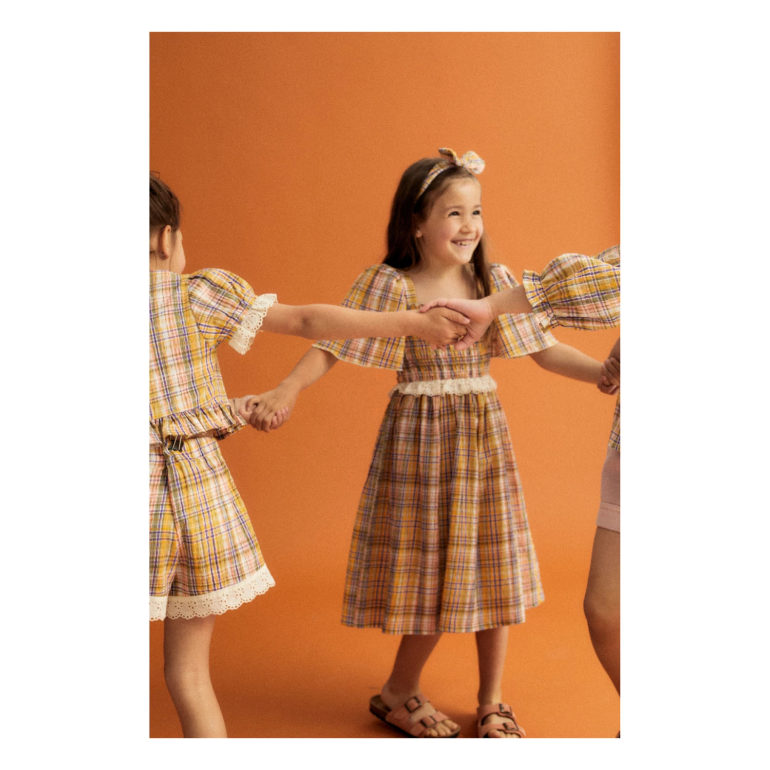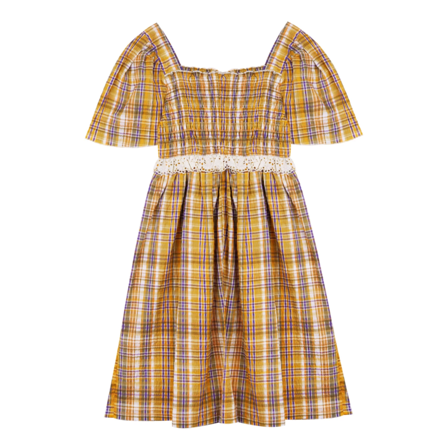 - Waffle effect, Waist yoke, Square neck, Satin stitch edge finish, Short sleeves, Smocked shirtfront, Pleated neckline, Wide sleeves