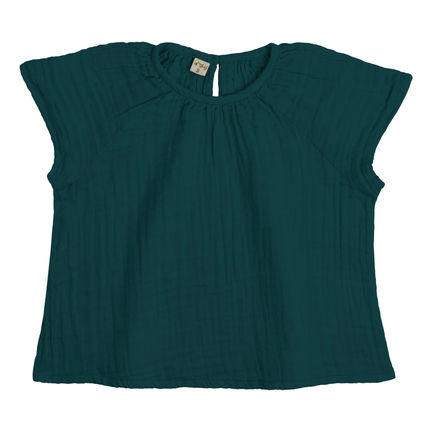 - Details : Round neckline, Short raglan sleeves, Button at the back, Keyhole closure