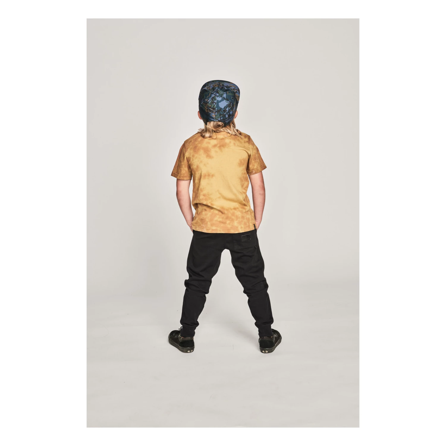 - Garment pulls on, Tie-dye print
