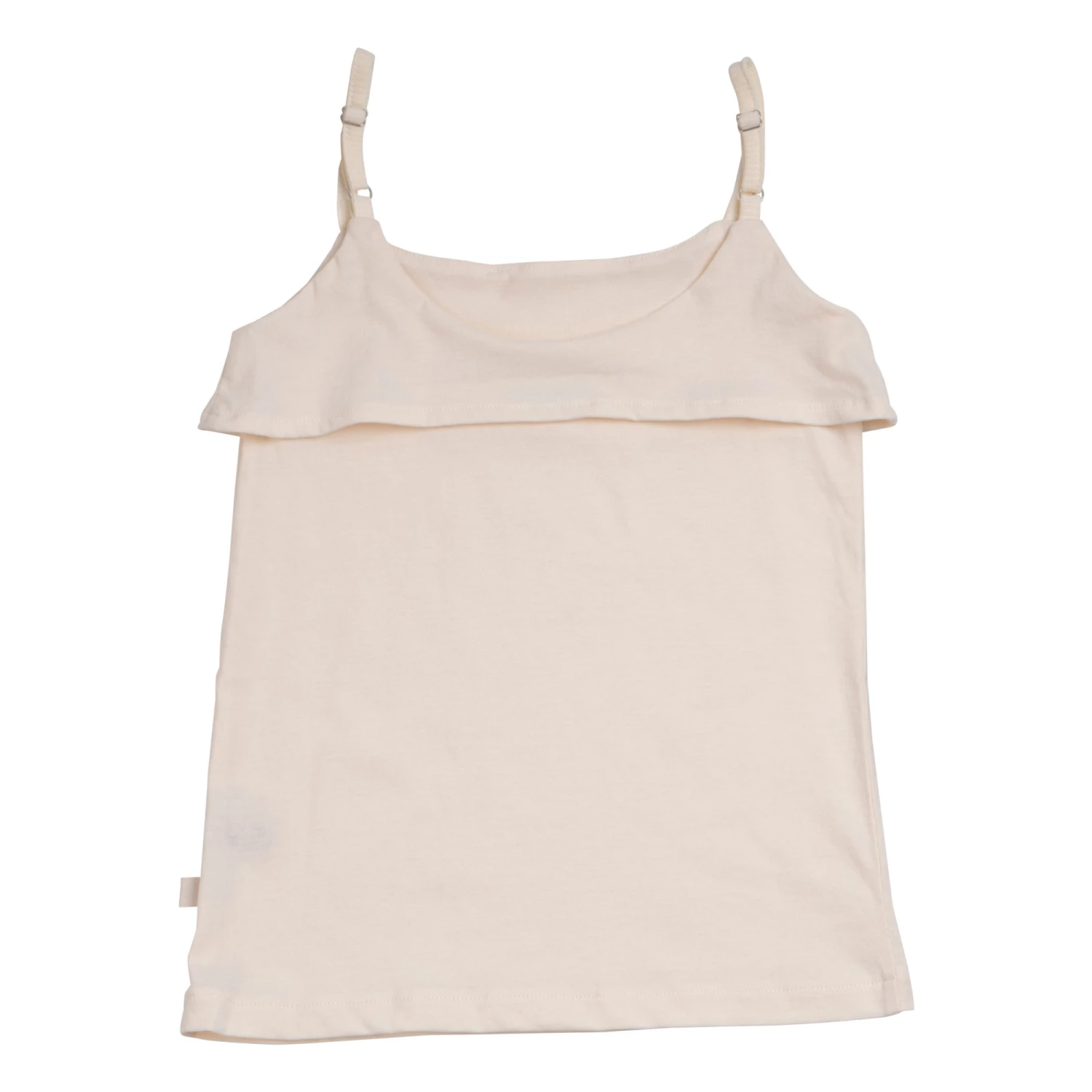 - Frilled yoke, Sewn-in brand label, Adjustable straps, Thin straps, Comfortable