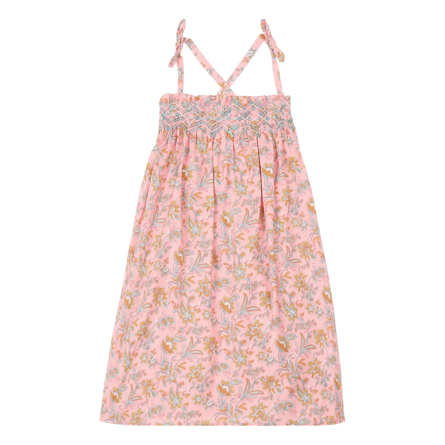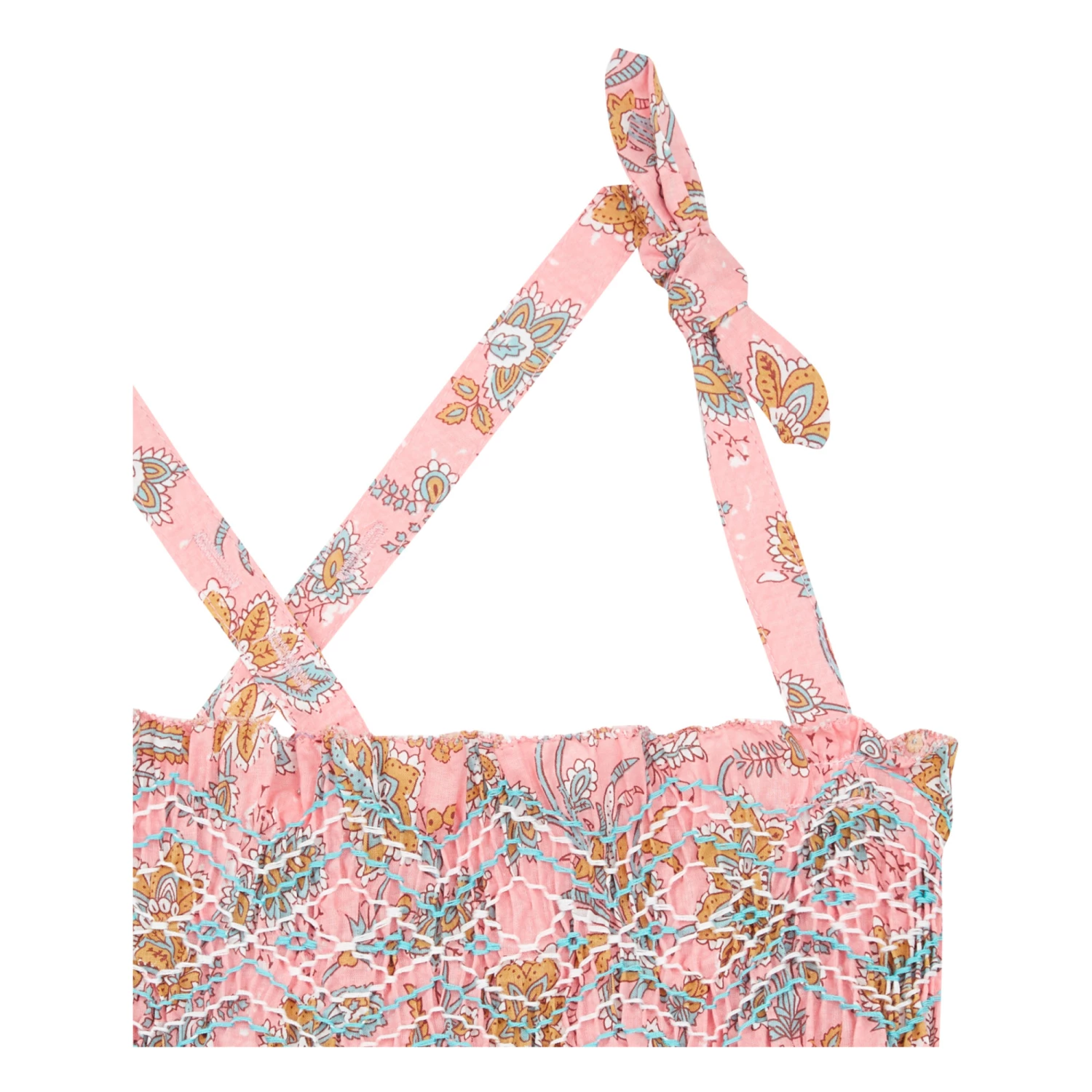 - Lined, Gathered neckline, Elastic band(s), Top stitched, Flowy, Smocked shirtfront, Pleated, Tie up straps, Embroidery, Adjustable