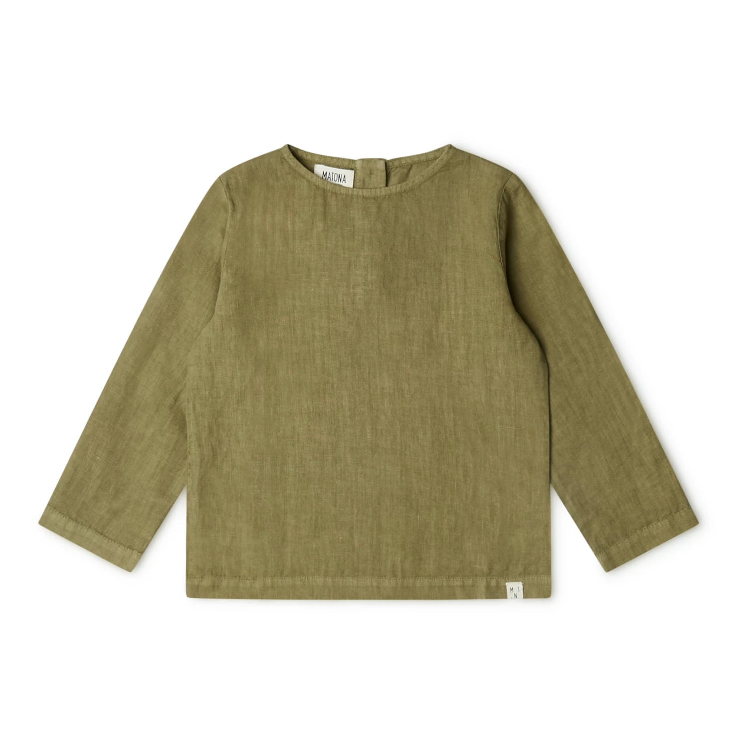 - Long sleeves, Sewn-in brand label, Rounded collar
