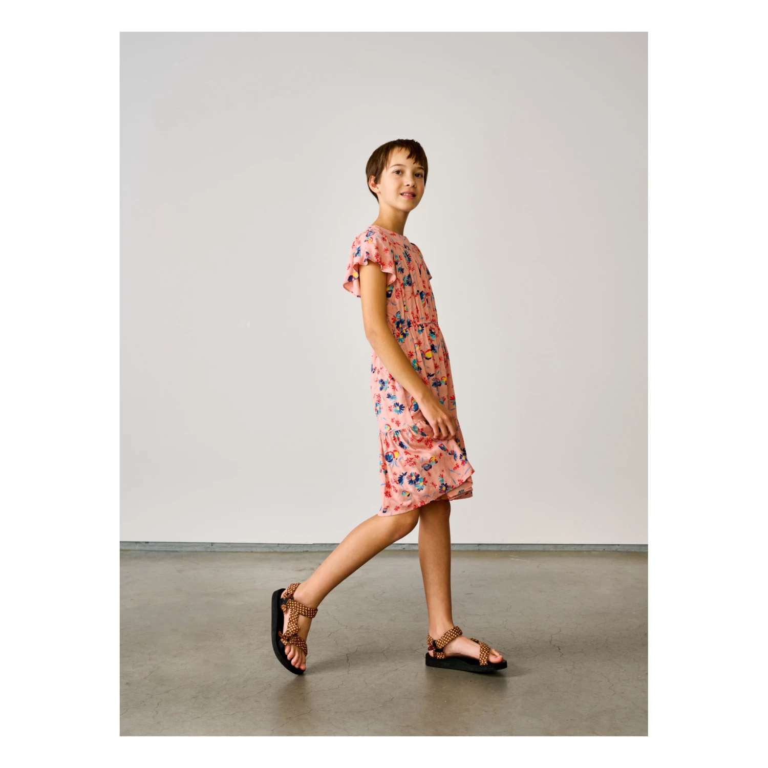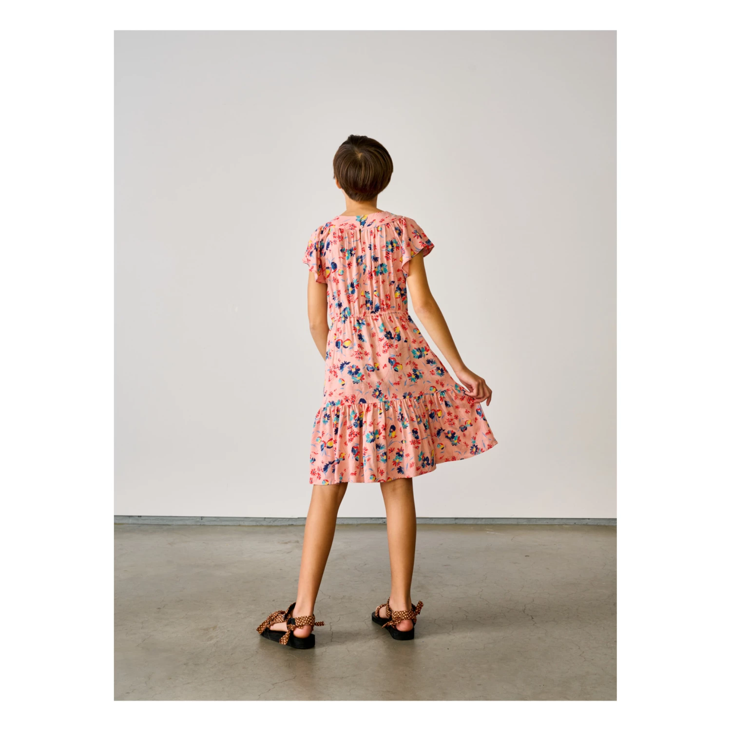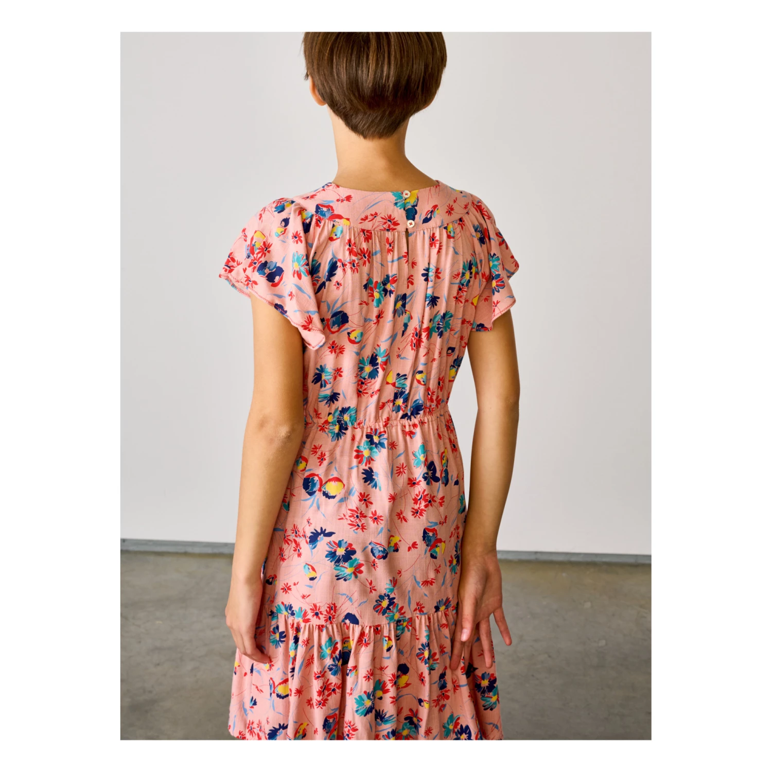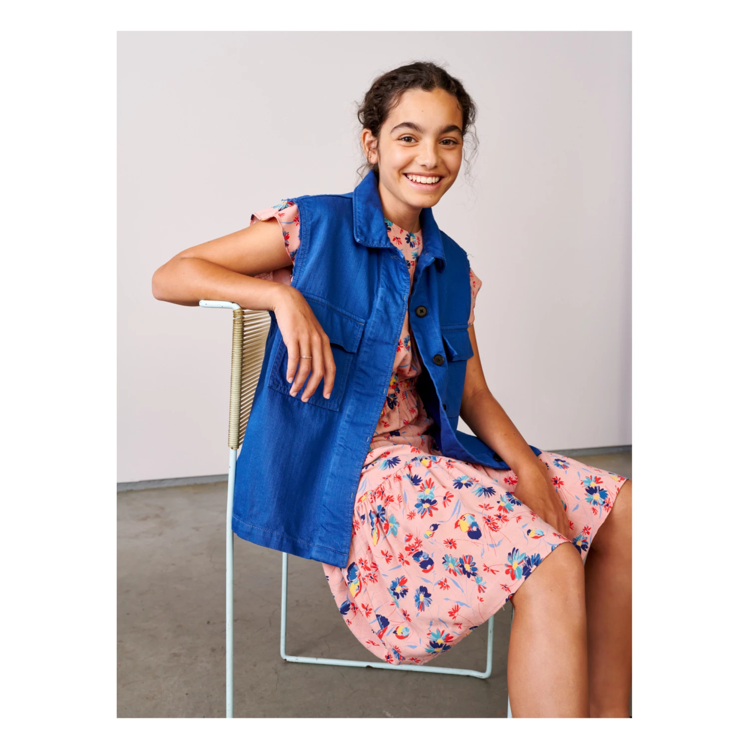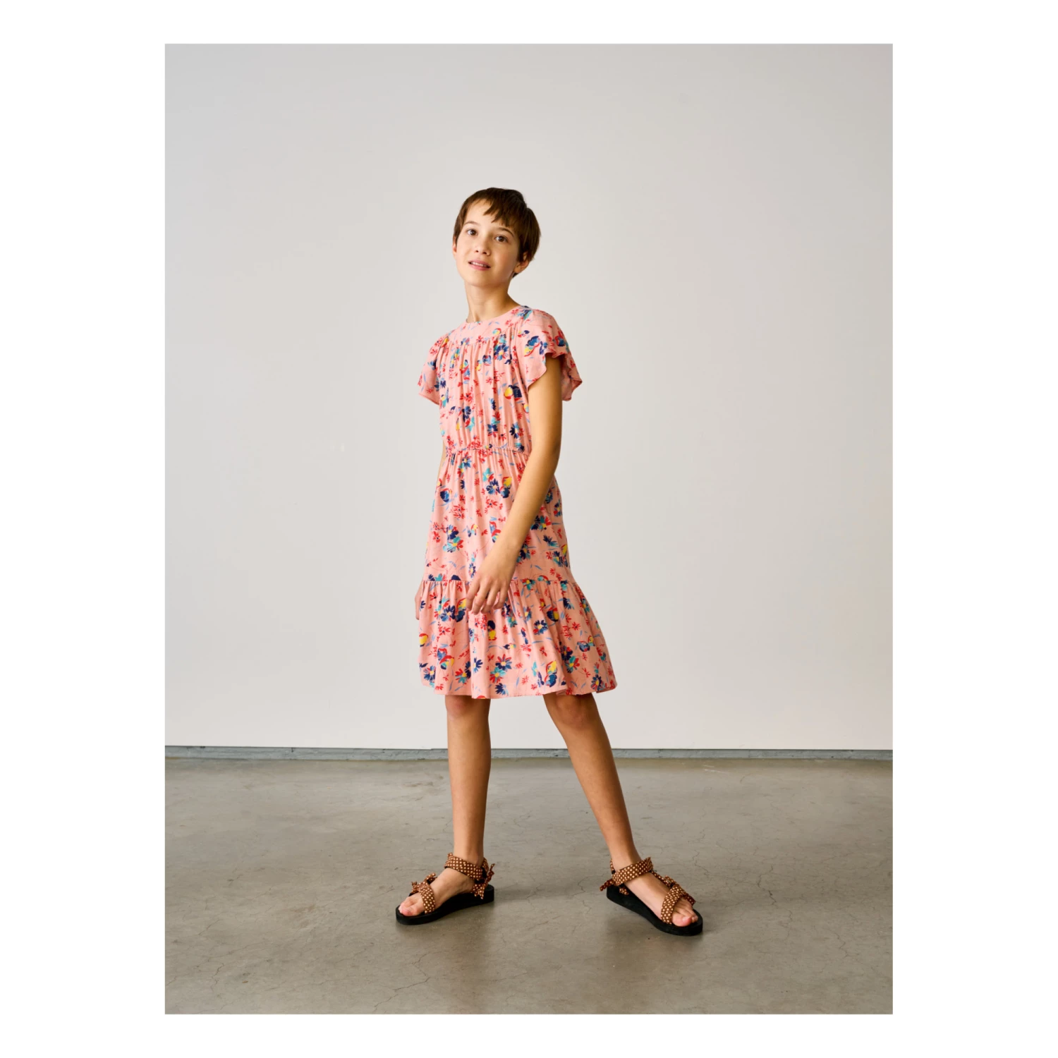 - Gathered detail, Gathered armholes, Crew neck, Flowy, Short sleeves, Pleated shirtfront, Contrasting top stitch, Elasticated waist, Wide sleeves