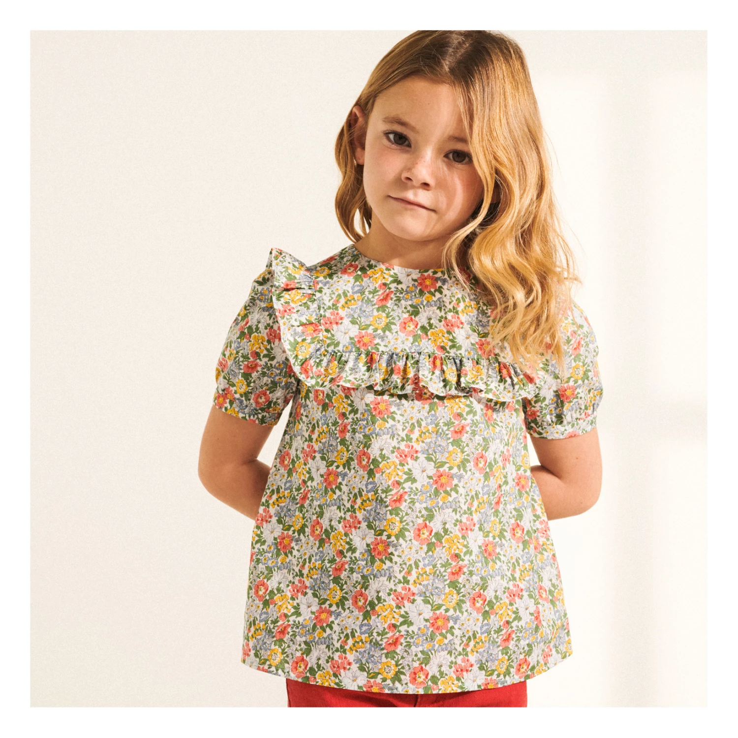 - Garment pulls on, Flower print