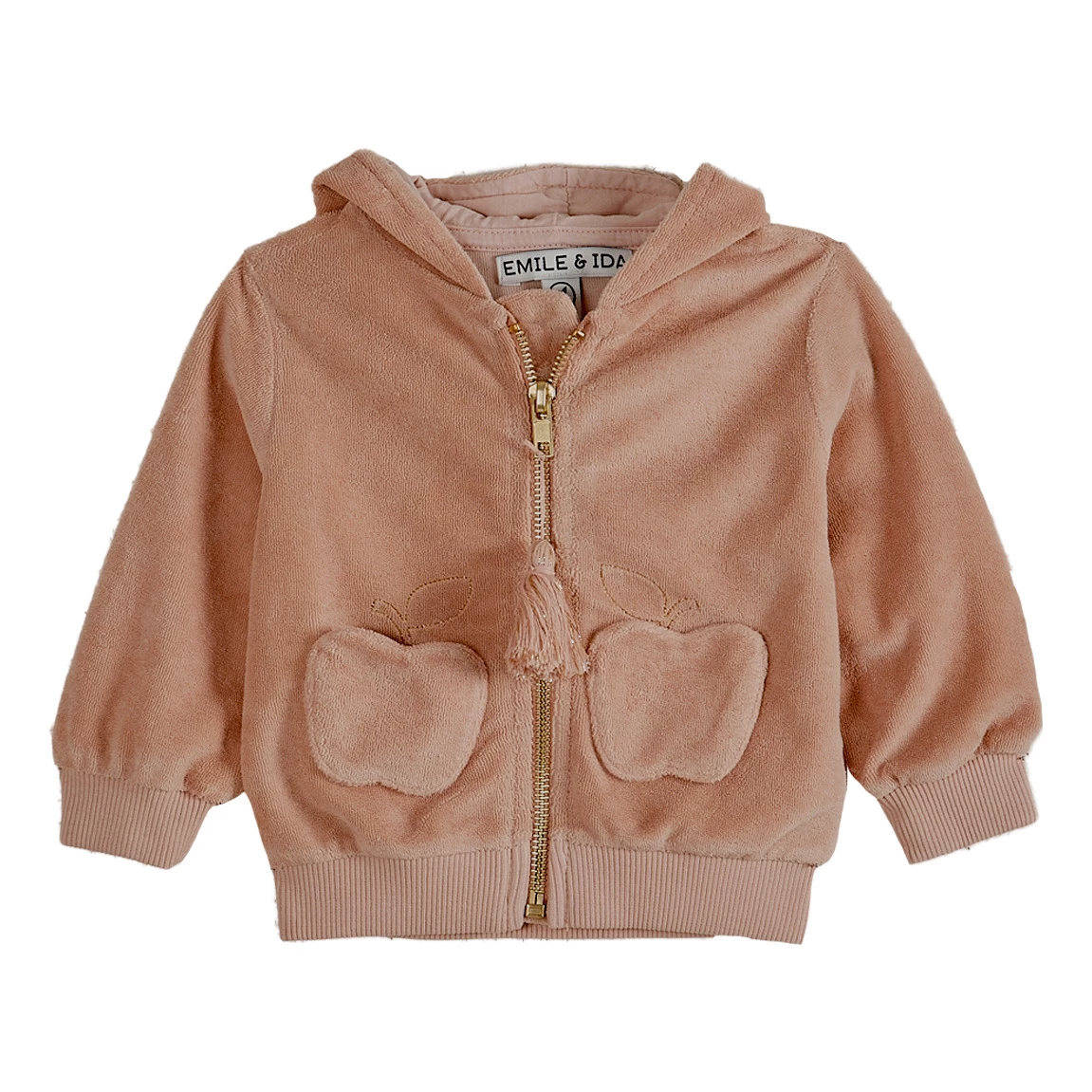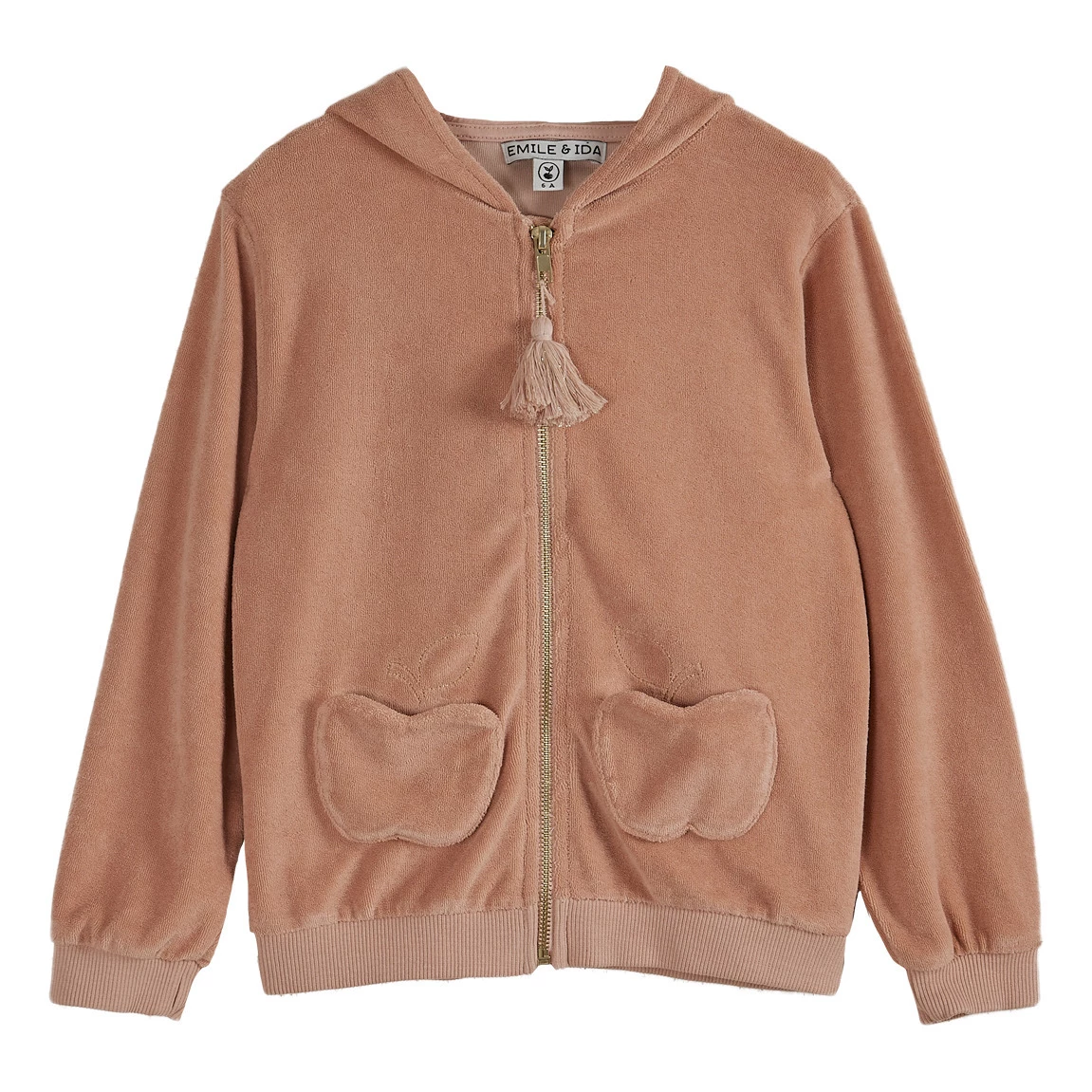 - Top stitched, Long sleeves, Decorative pocket(s), Ribbed cuffs, Pompom(s), Ribbed edges, Hood