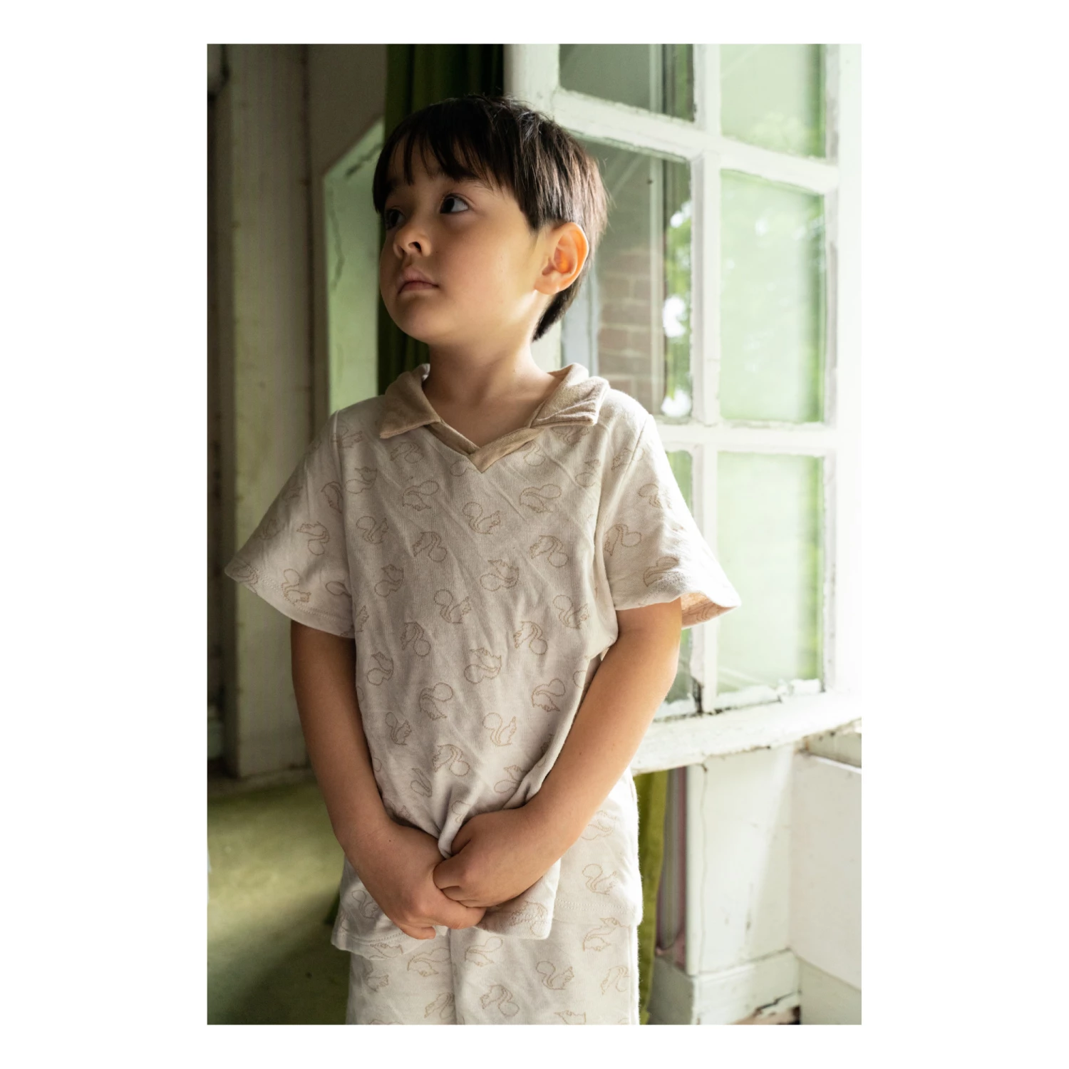 - V neck, Top stitched, Flowy, Short sleeves, Elasticated waist, Contrasting edges, Polo collar