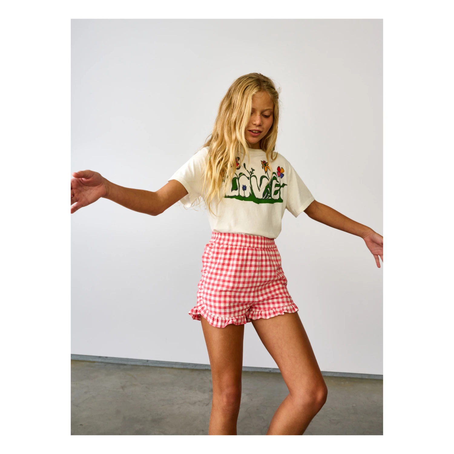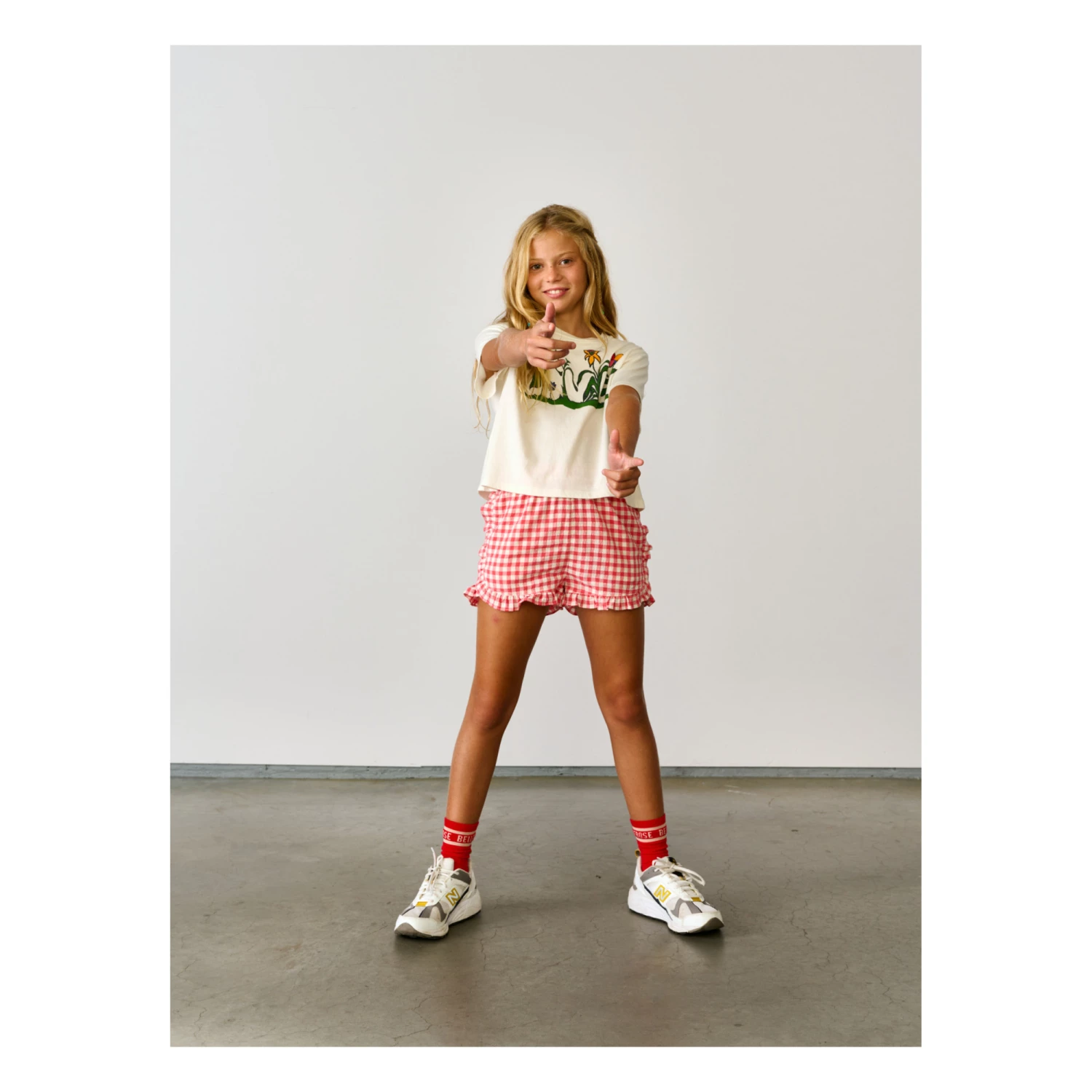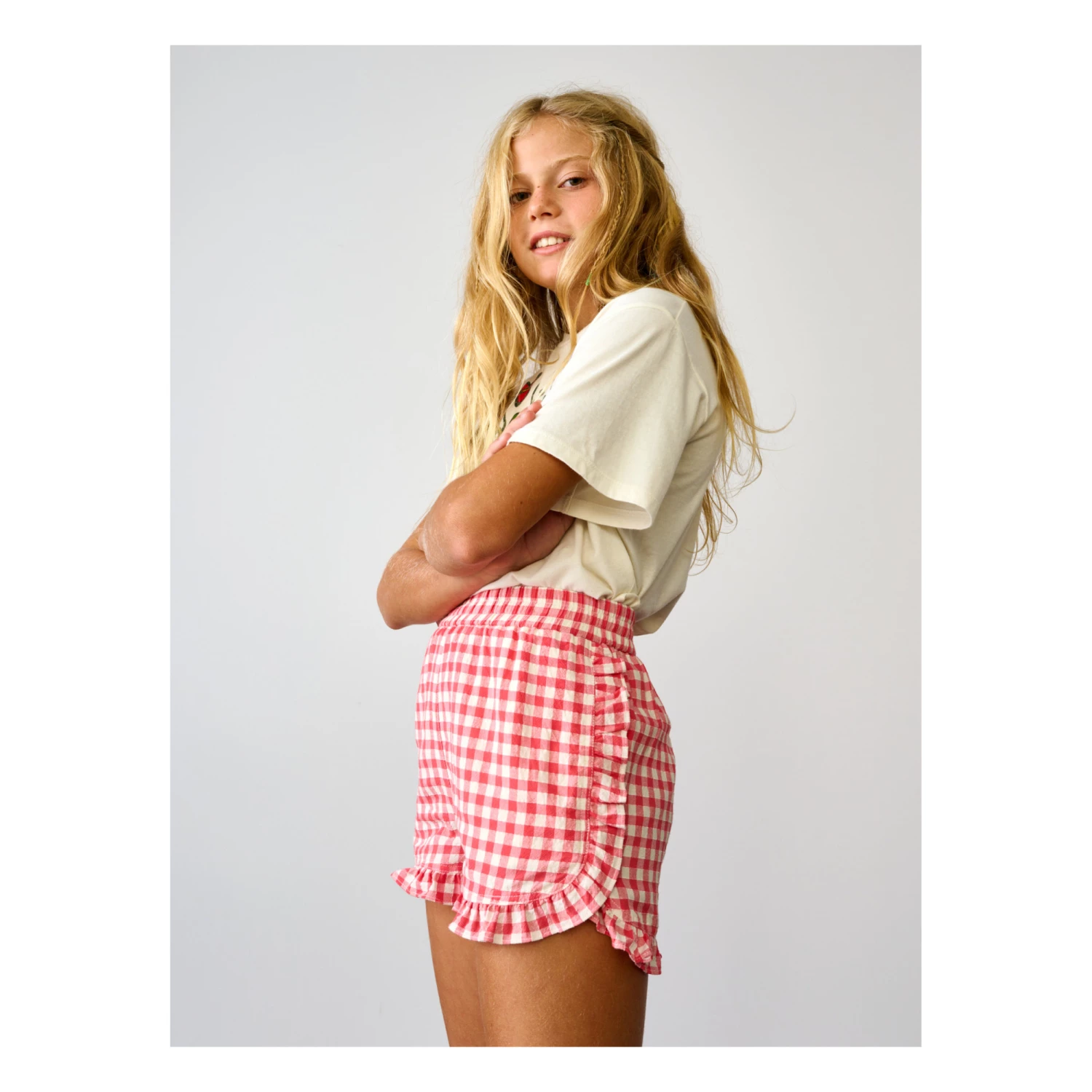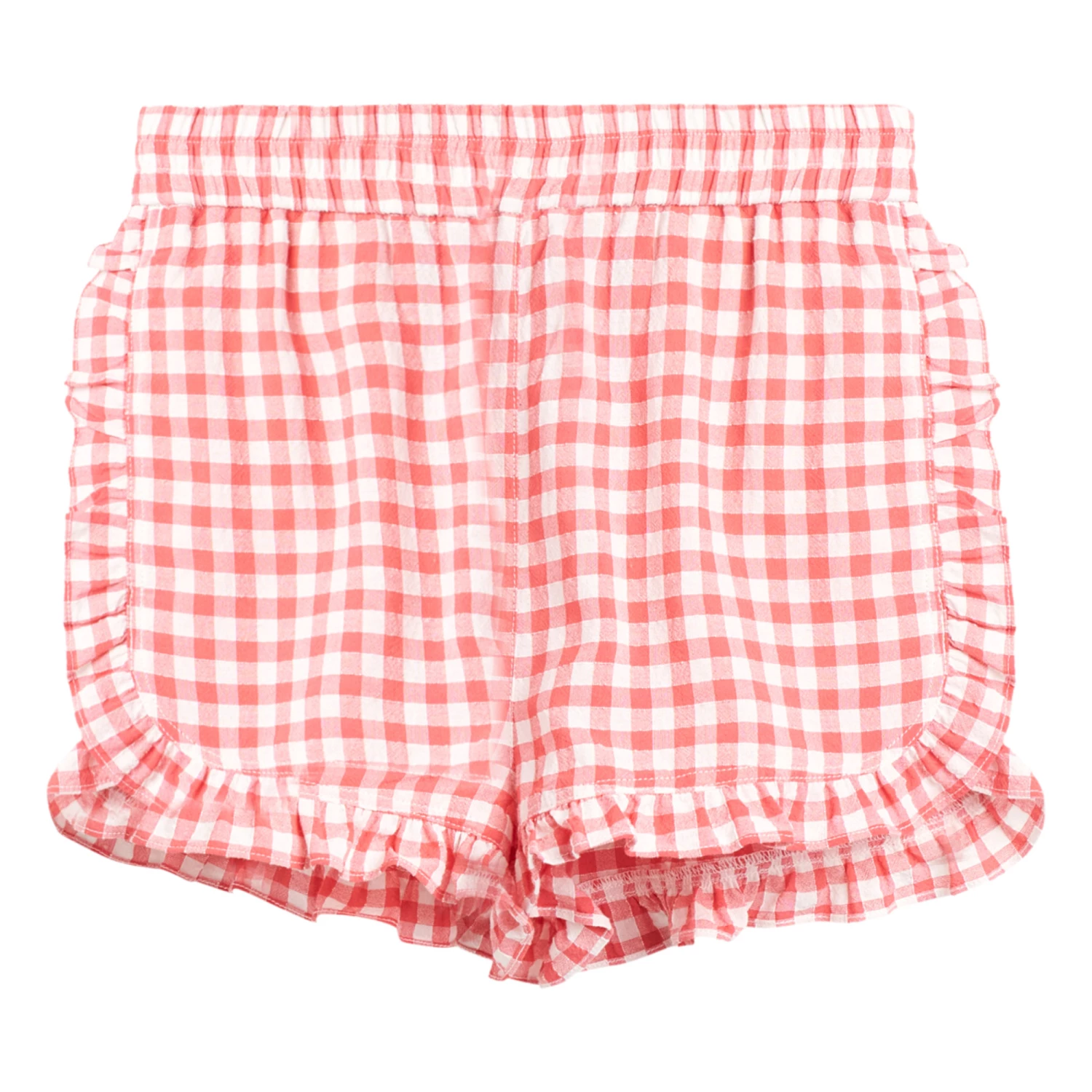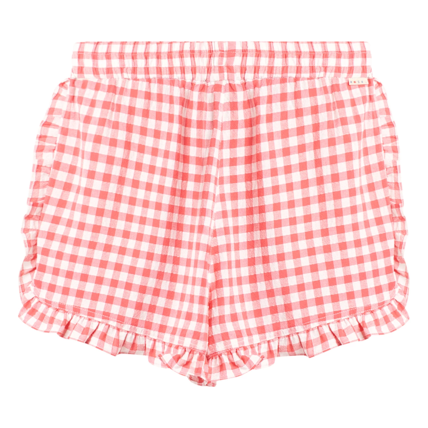 - Contrast stitching, Frilled edges, Elasticated waist, Sewn-in brand label