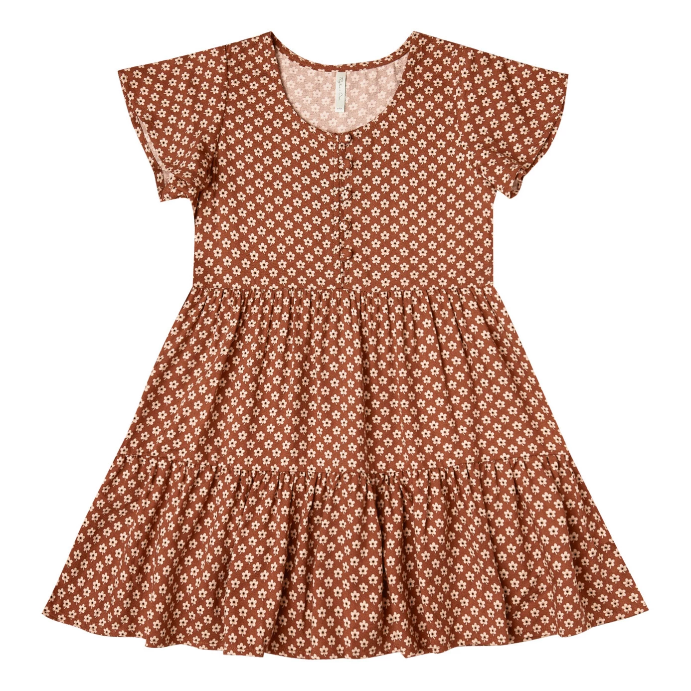 - Details : Flared cut, Short sleeves, Buttons, Gathered at the bottom of the dress
