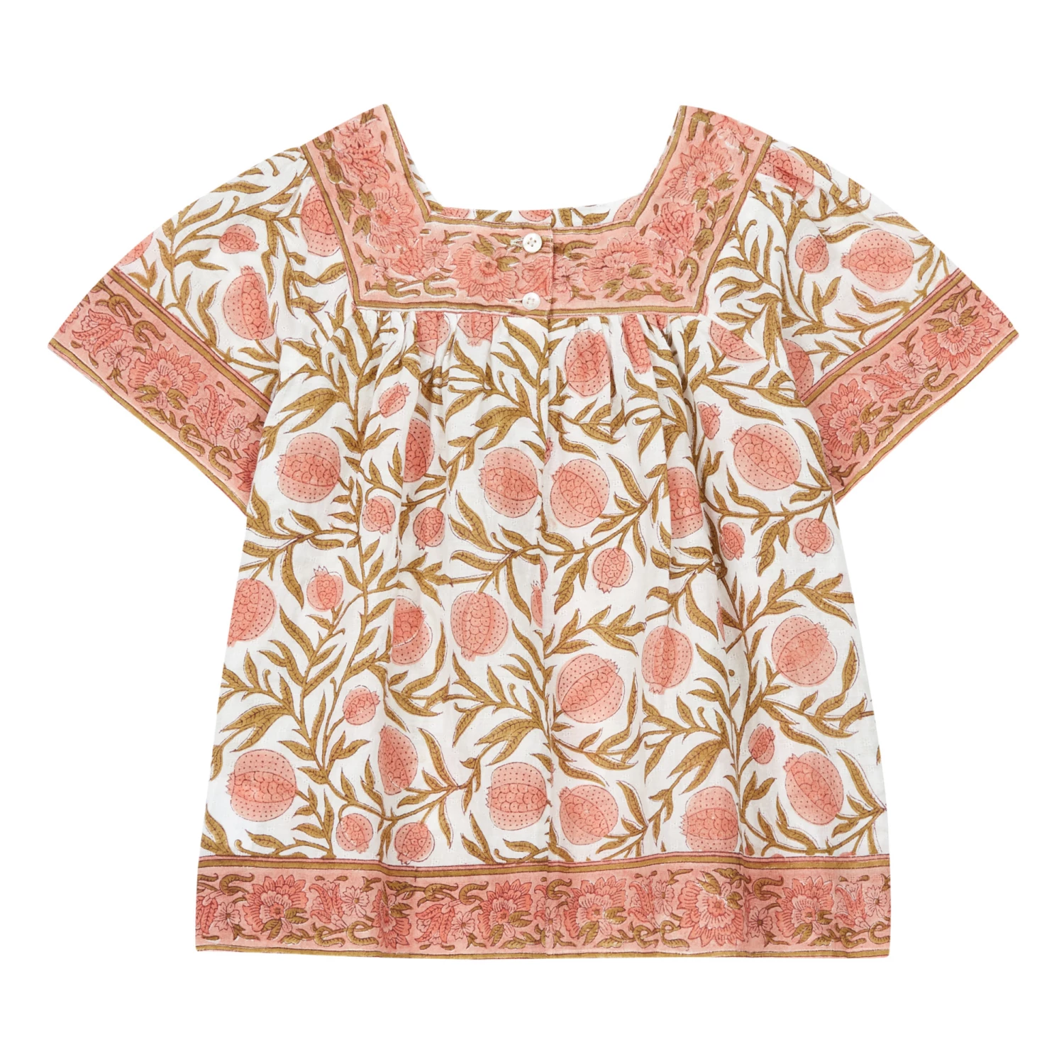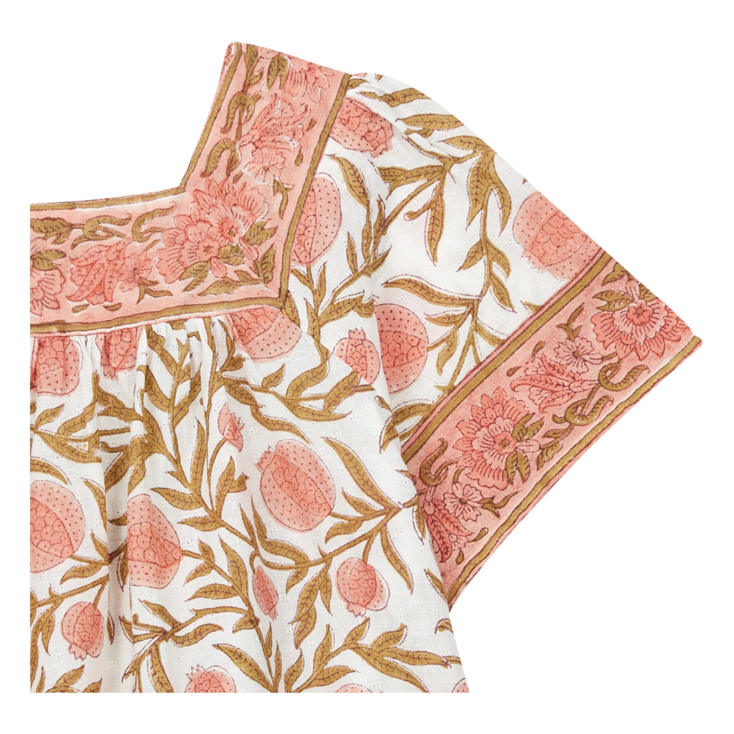 - Ruffle front, Gathered at the back, Square neck, Lightweight, Short sleeves, Top stitched edges, Wide sleeves
