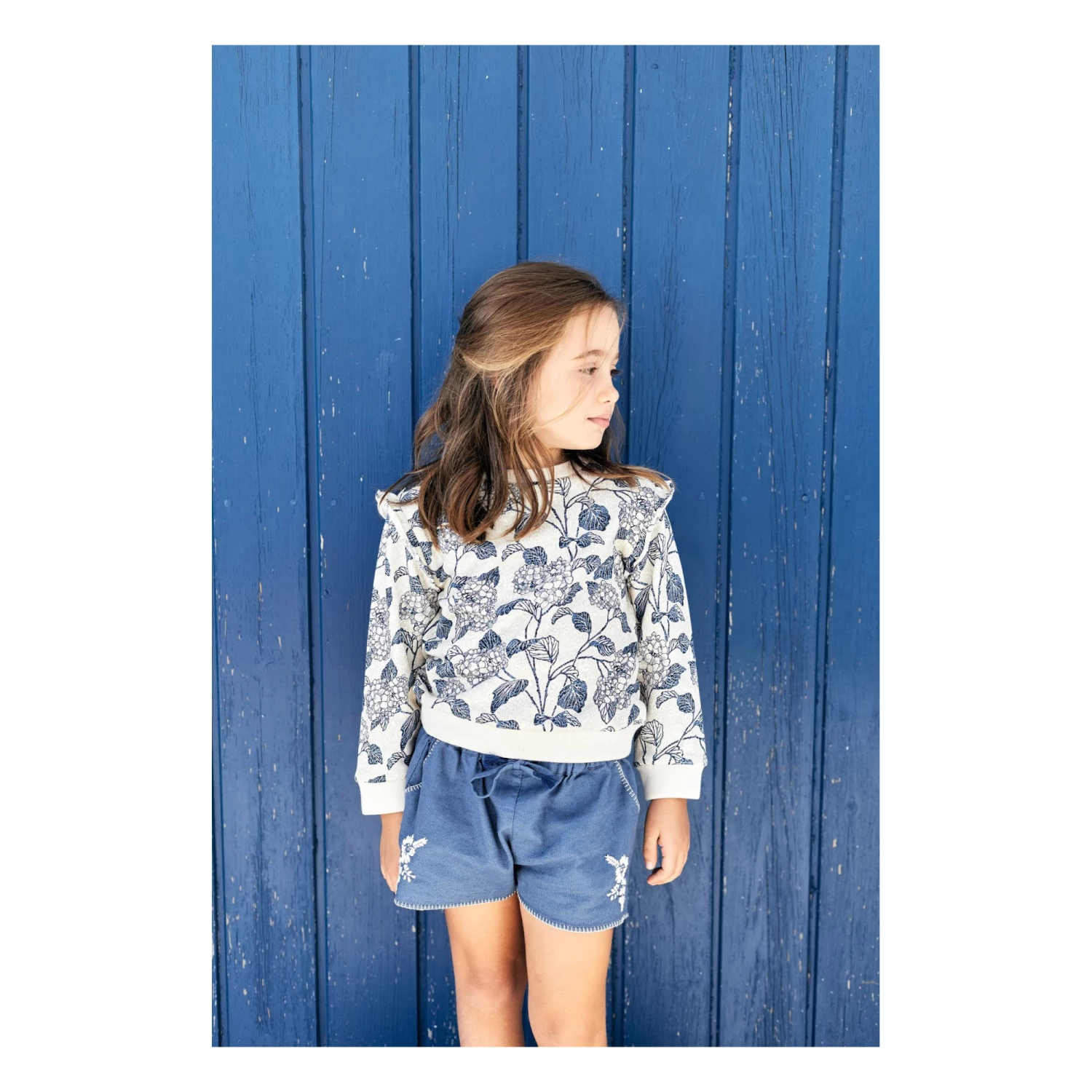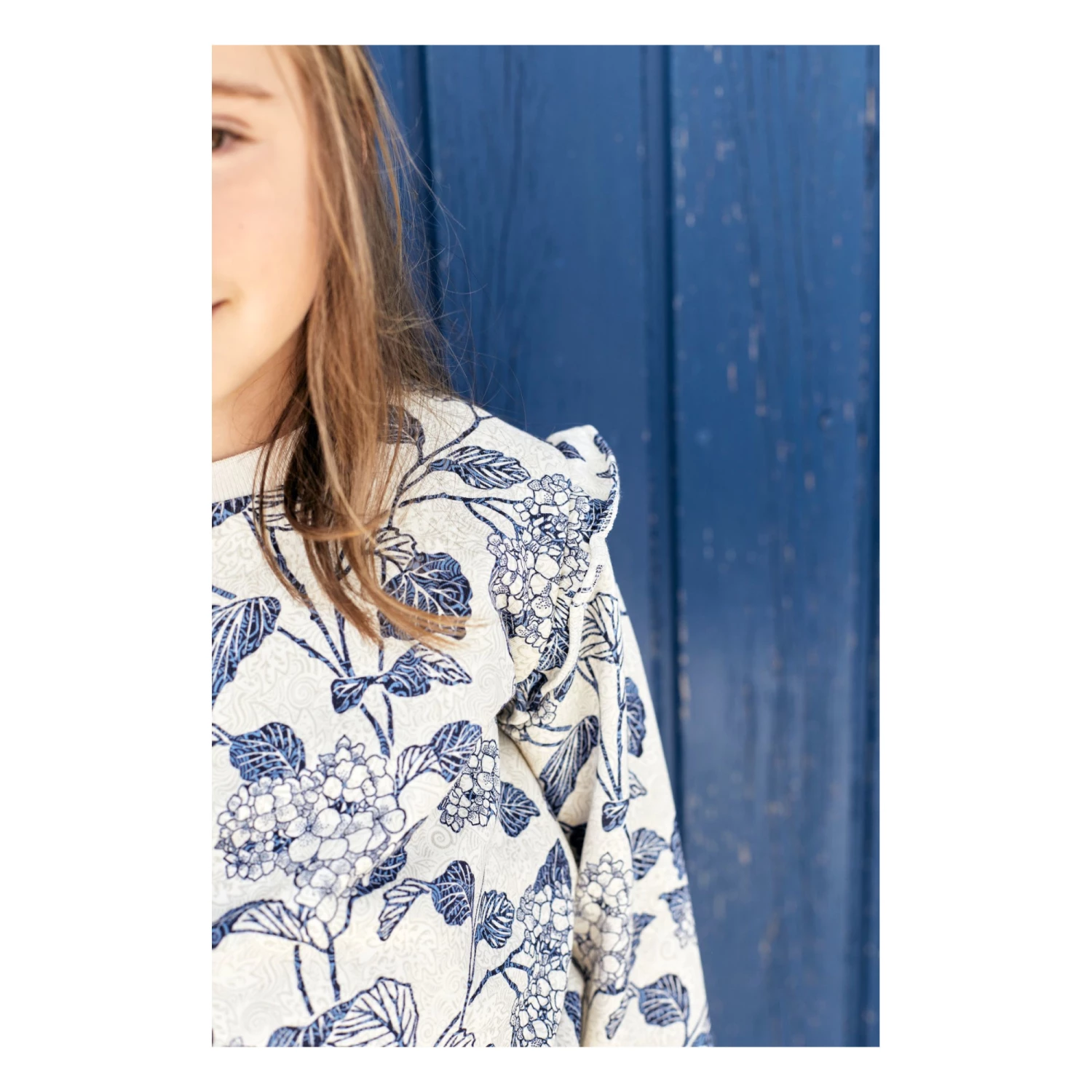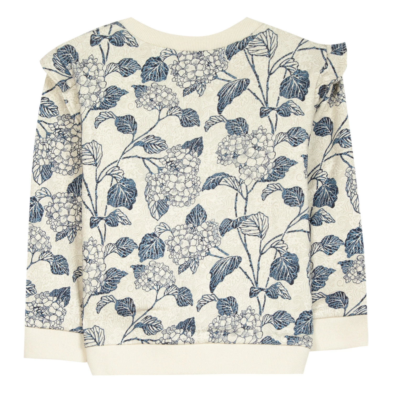 - Frilled sleeves, Crew neck, Long sleeves, Ribbed cuffs, Rolled hem, Ribbed neckband