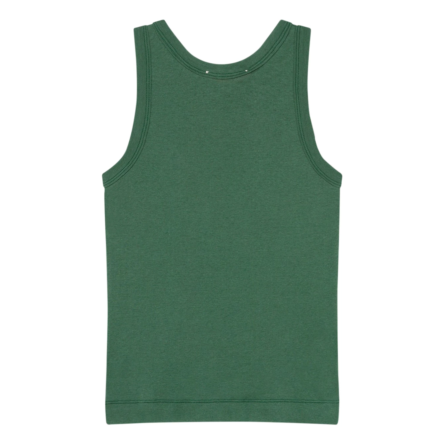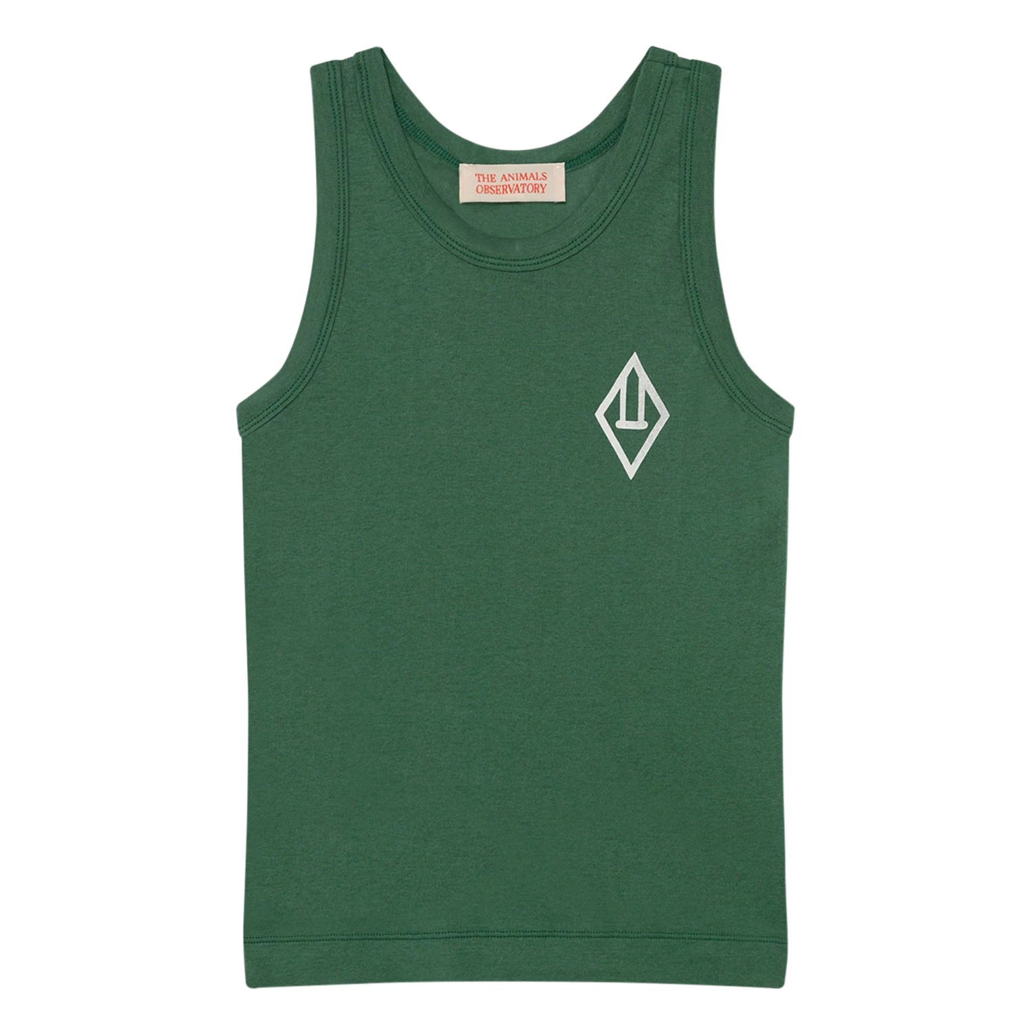 - Low armholes, Crew neck, Embroidered logo, Thick straps, Ribbed neckband