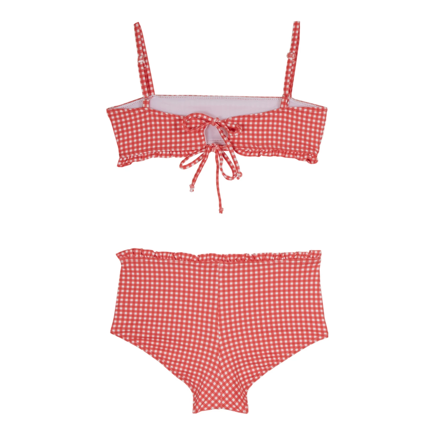- Tie fastening, Garment pulls on, Gingham print