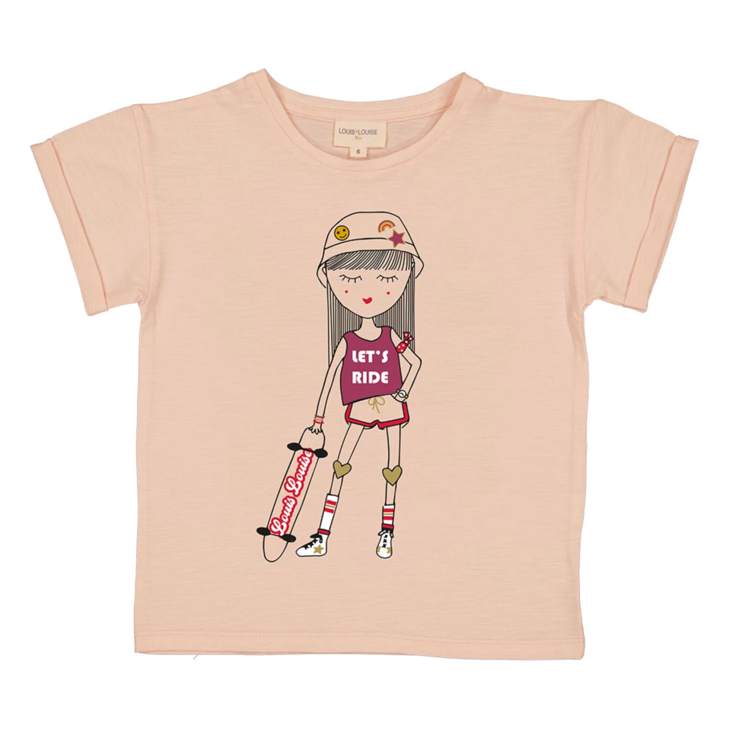 - Crew neck, Top stitched, Flowy, Lightweight and comfortable, Short sleeves, Print on front, Sleeve turn-ups