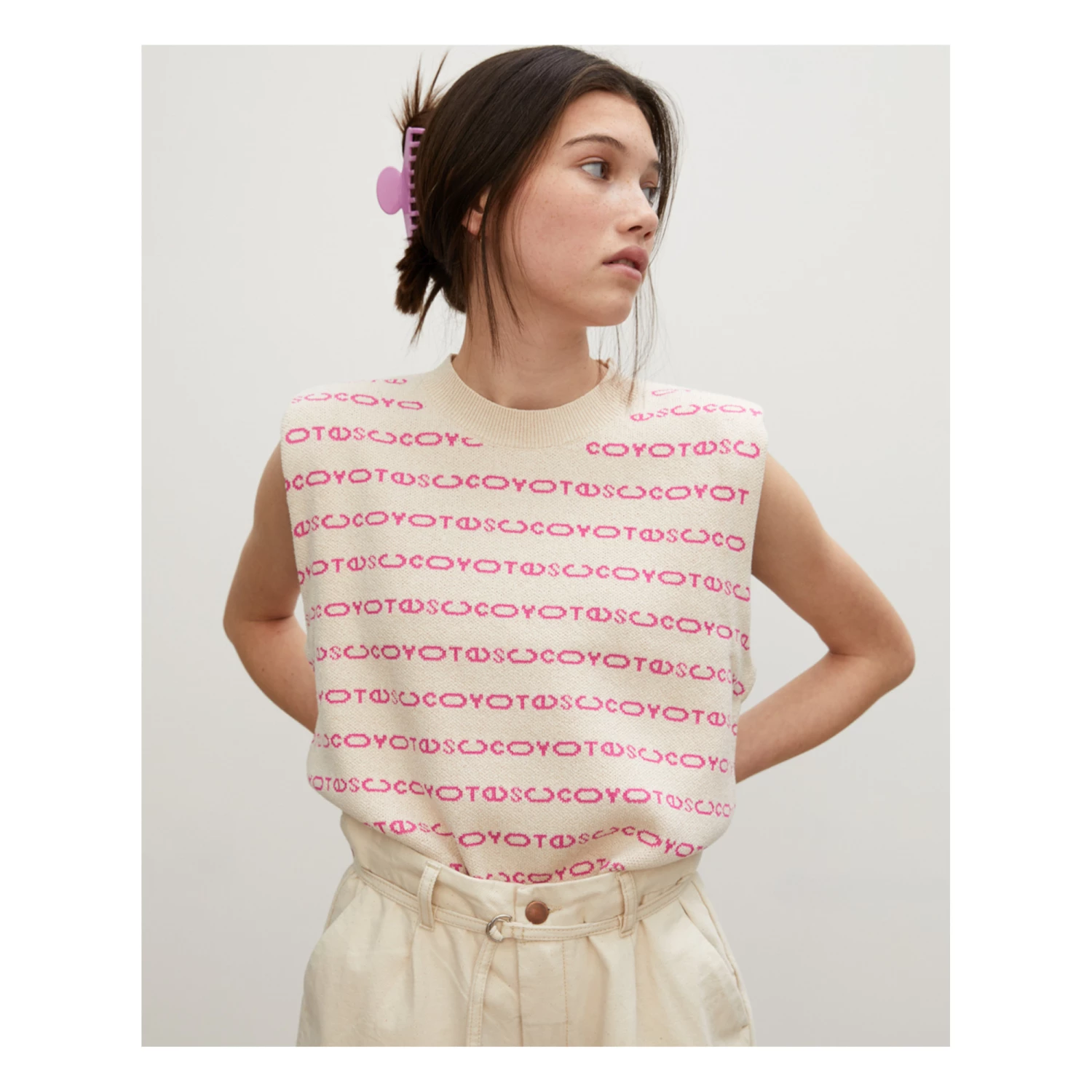 - Crew neck, Shoulder pads, Contrasting logo, Ribbed edges, Sleeveless, Wide armholes