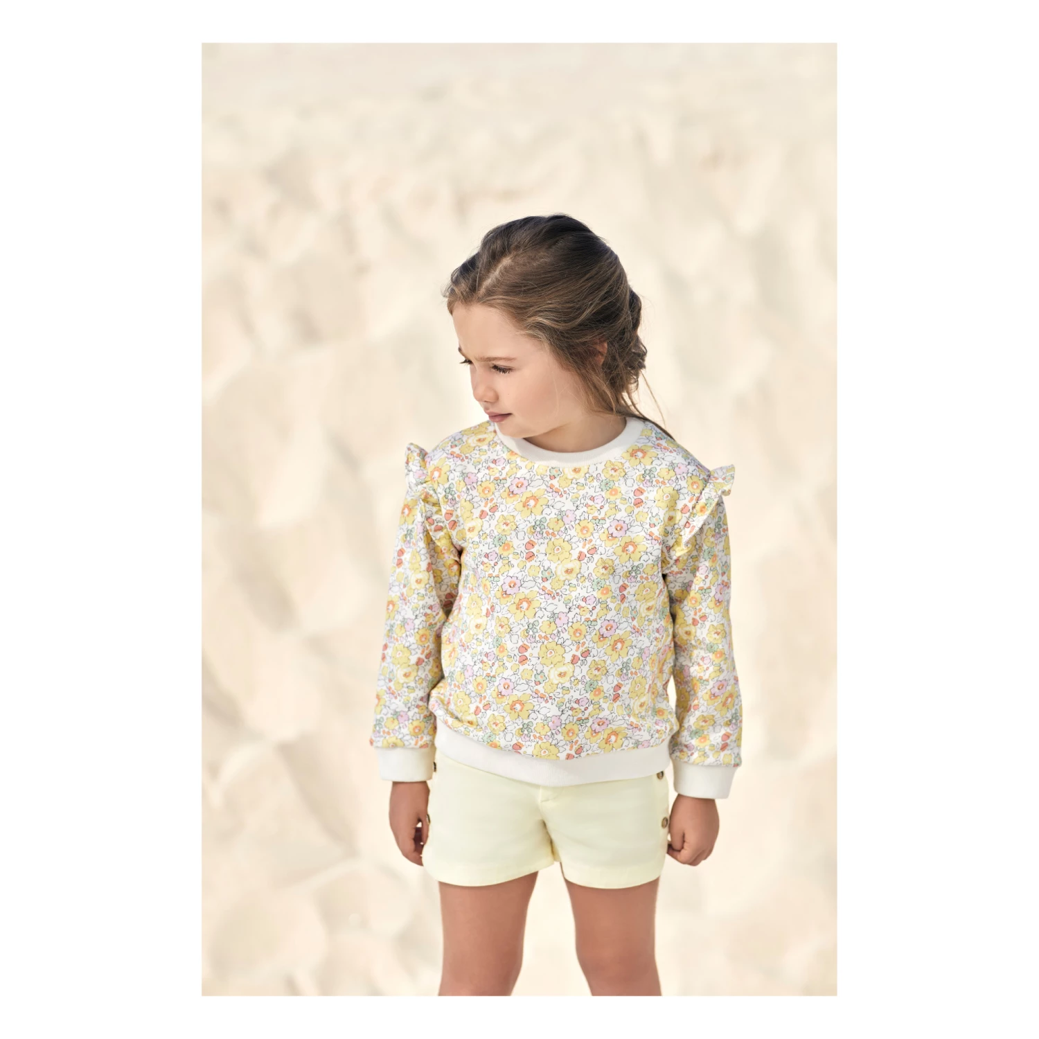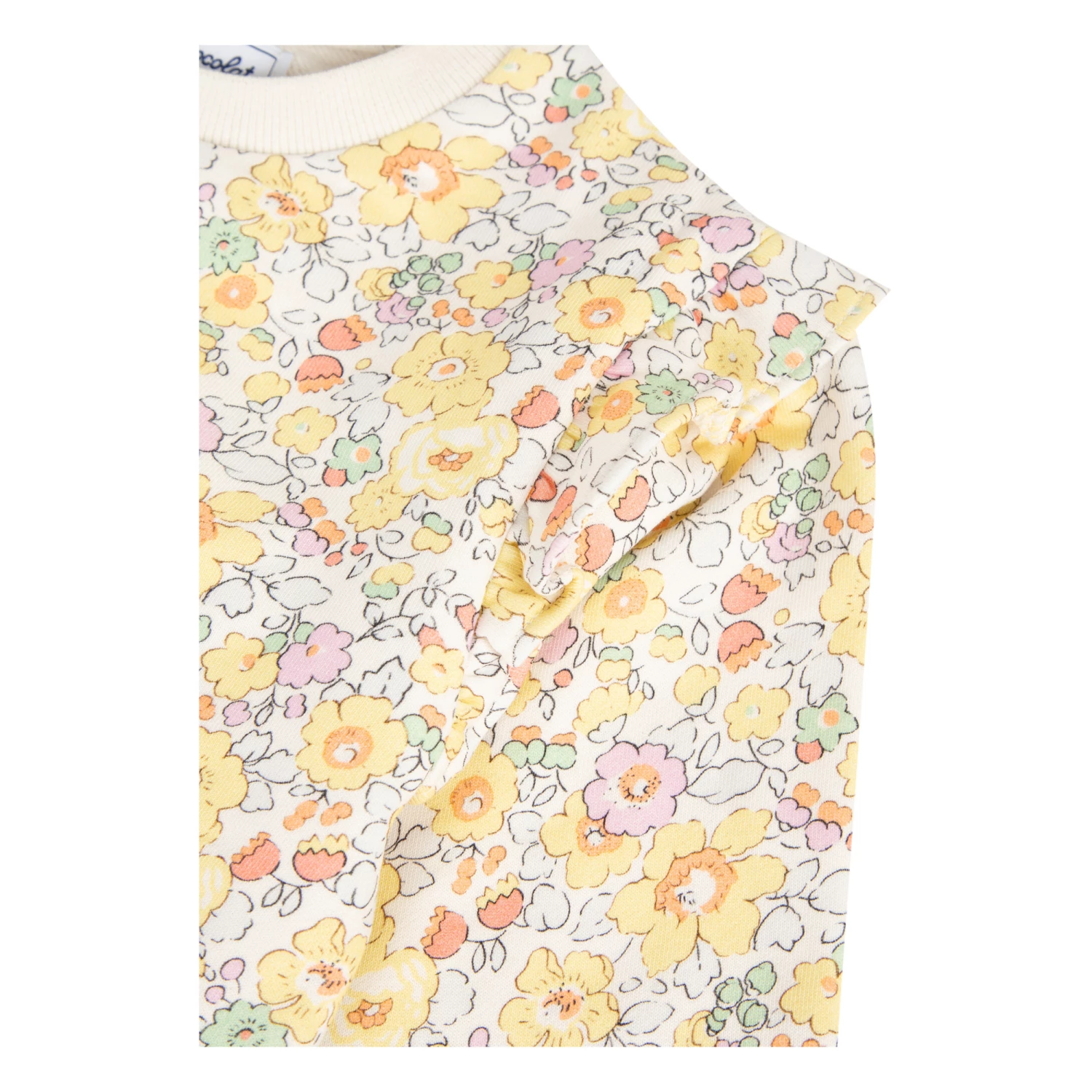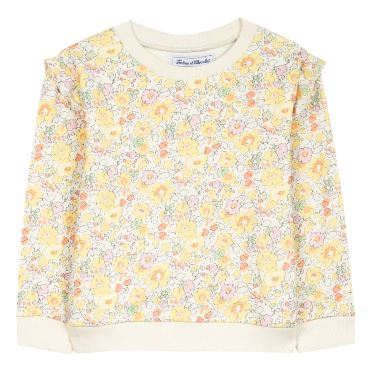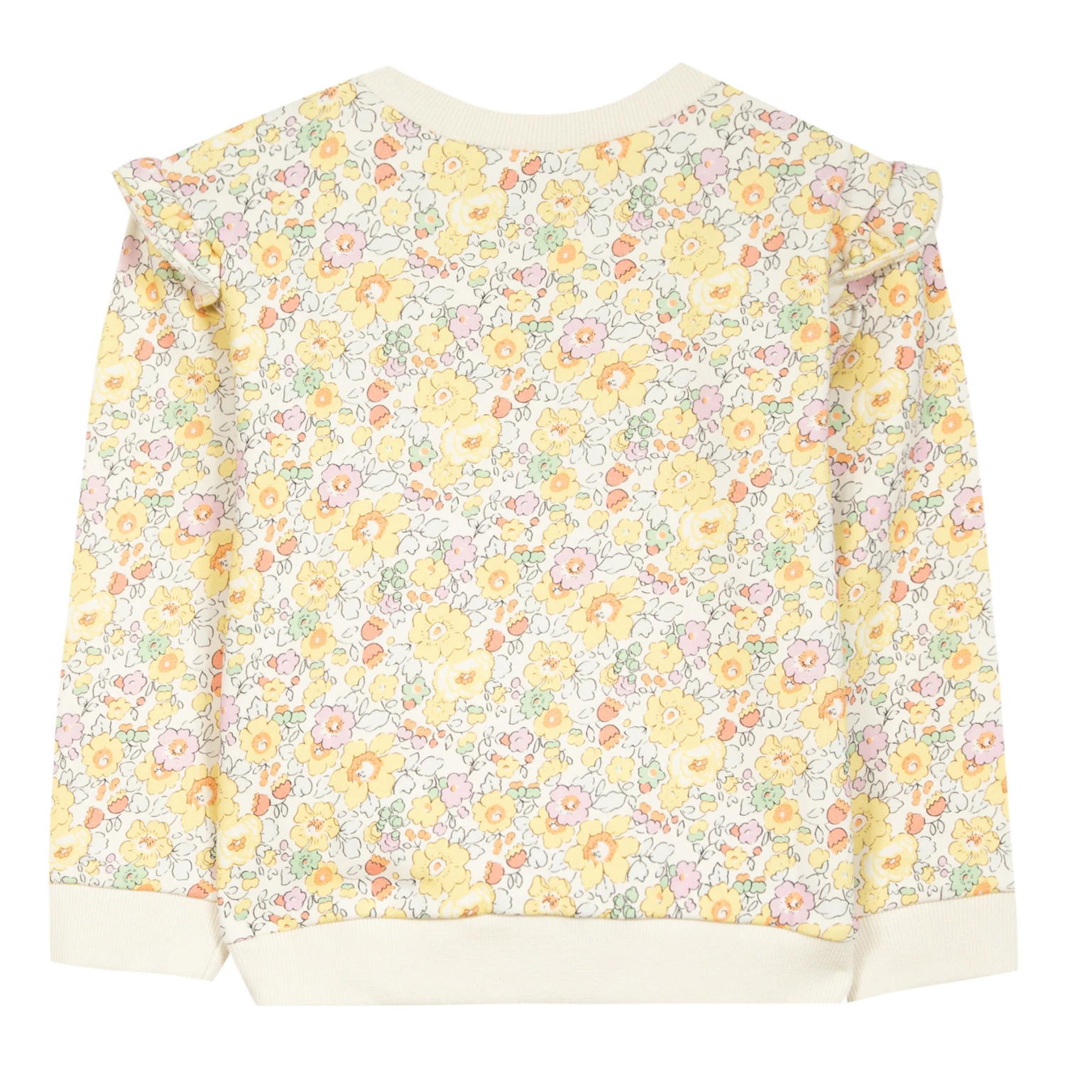 - Frilled sleeves, Crew neck, Long sleeves, Ribbed cuffs, Rolled hem, Ribbed neckband