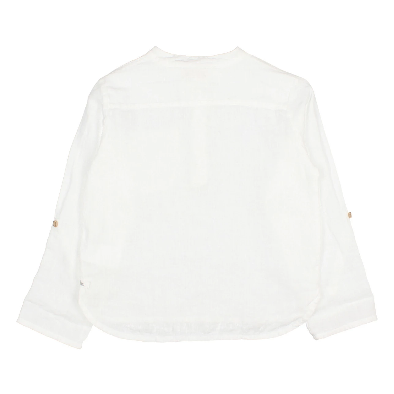 - Garment pulls on, Button(s) at the neck
