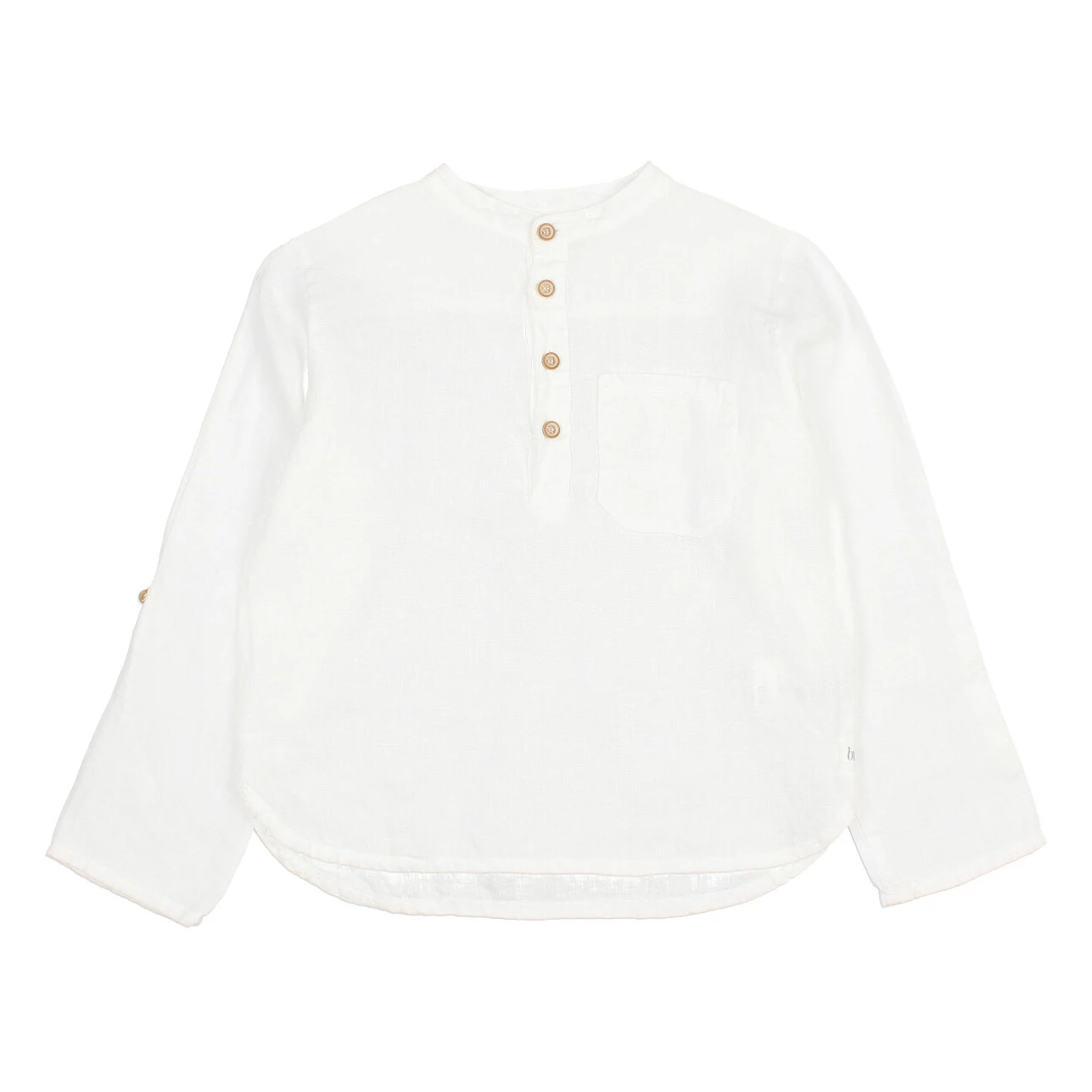 - Crew neck, Slit side(s), Lightweight, Long sleeves, Longer at the back, Breast pocket(s), Top stitched edges, Sewn-in brand label, Mandarin collar