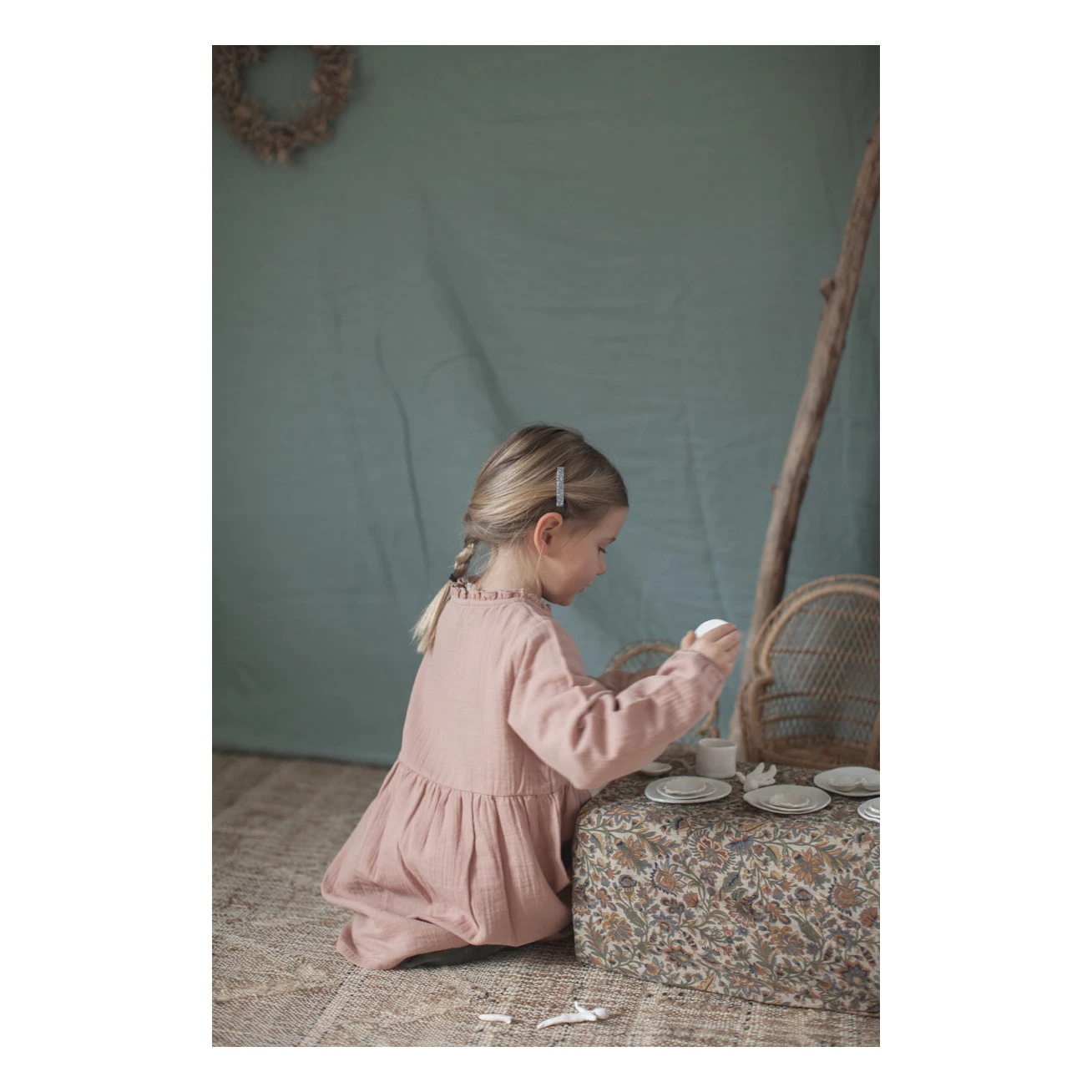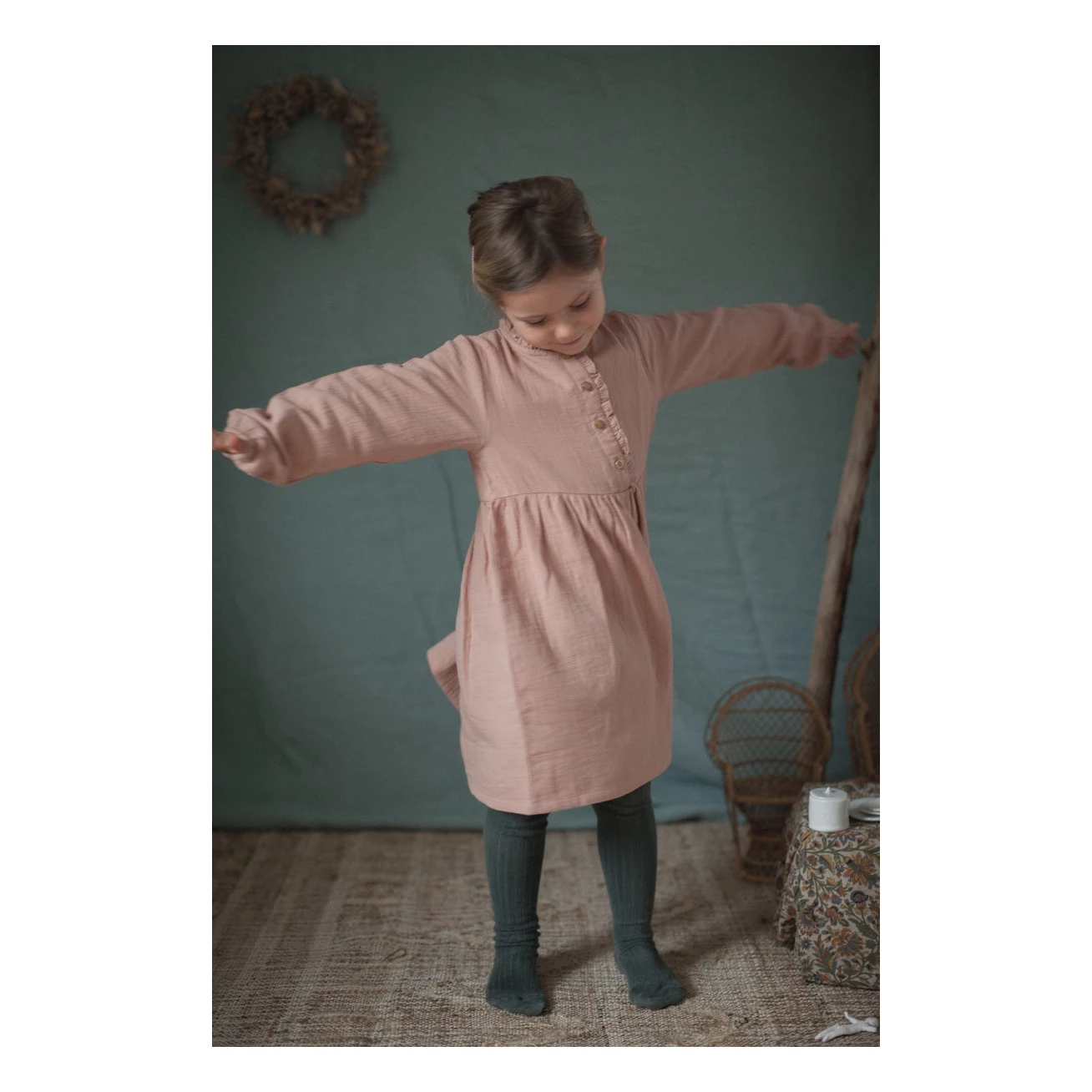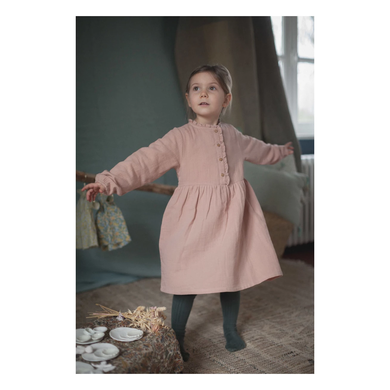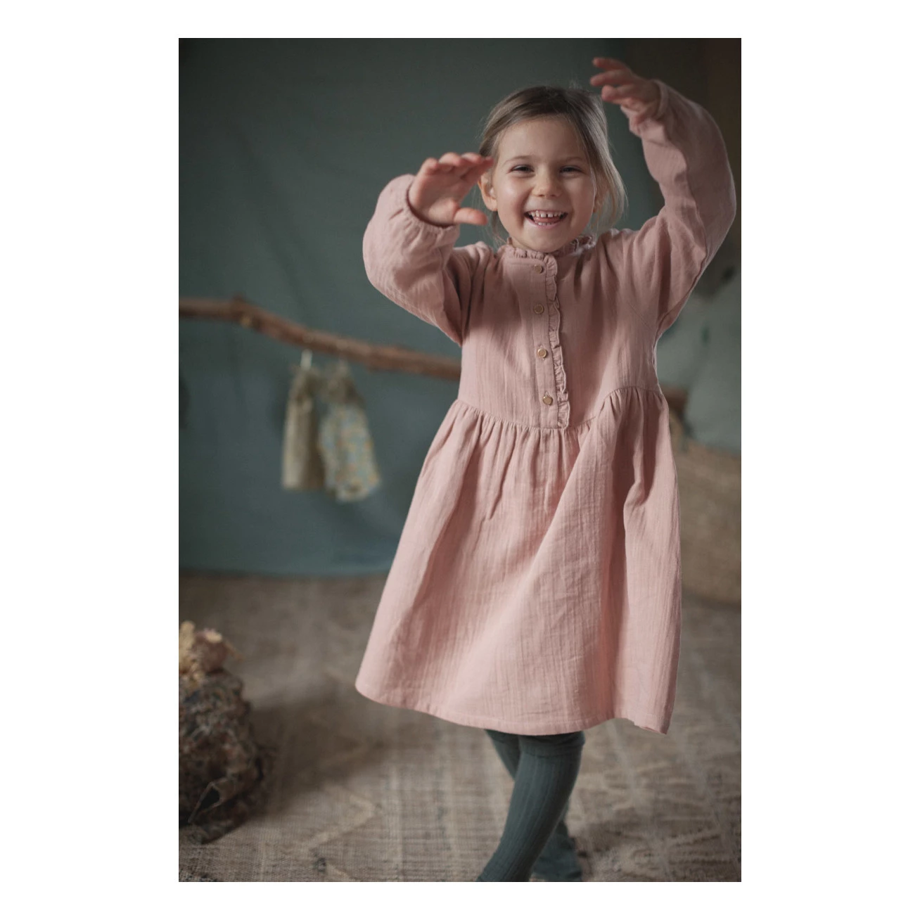 - Long sleeves, Buttoned cuffs, Gathered at the waist, Frilled collar