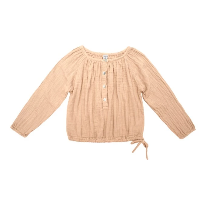 - Details : Round neckline, Long sleeves, Button tab, Ties