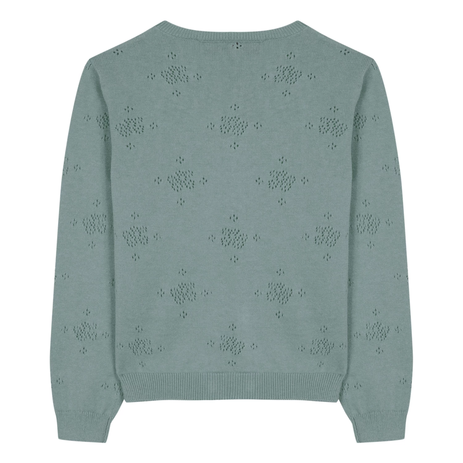 - Crew neck, Long sleeves, Ribbed cuffs, Ribbed edges, Openwork knit, Ribbed neckband