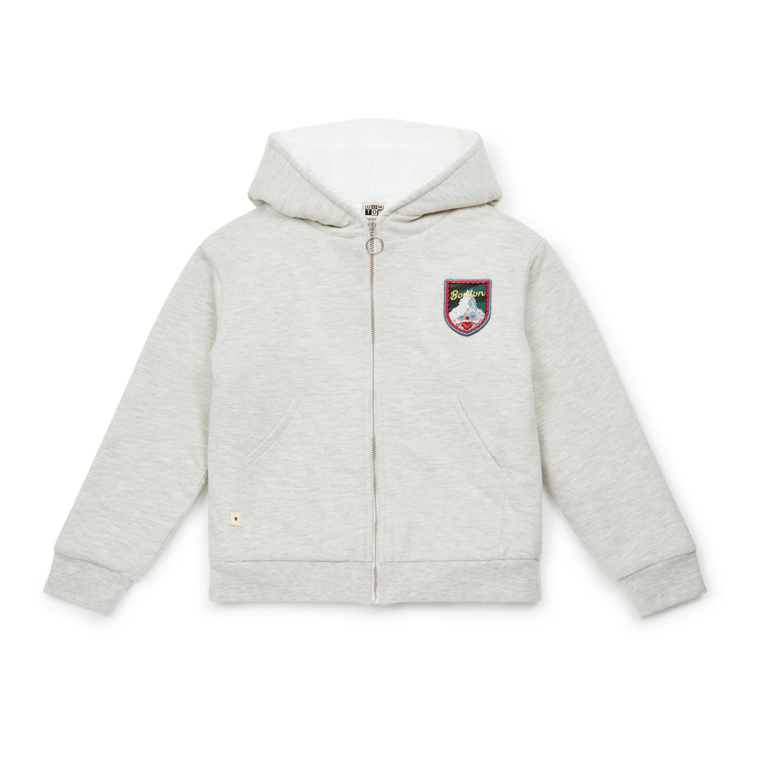 - Crew neck, Long sleeves, Embroidered patch(es), Front patch pocket(s), Close-fitting at bottom, Sewn-in brand label, Faux-fur hood, Warm and comfortable