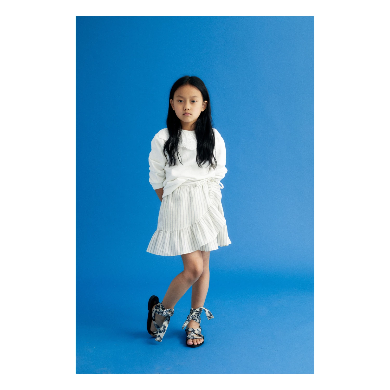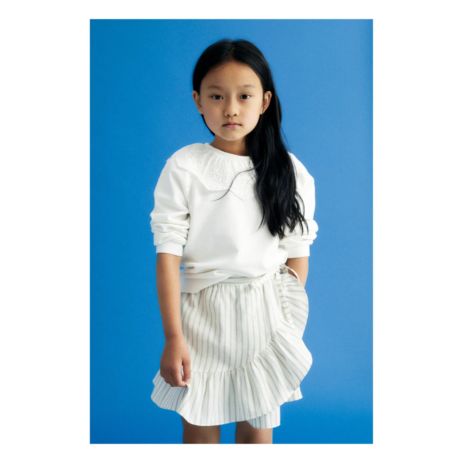 - Top stitched, Flowy, Knife pleat(s), Frilled edges, Adjustable waist