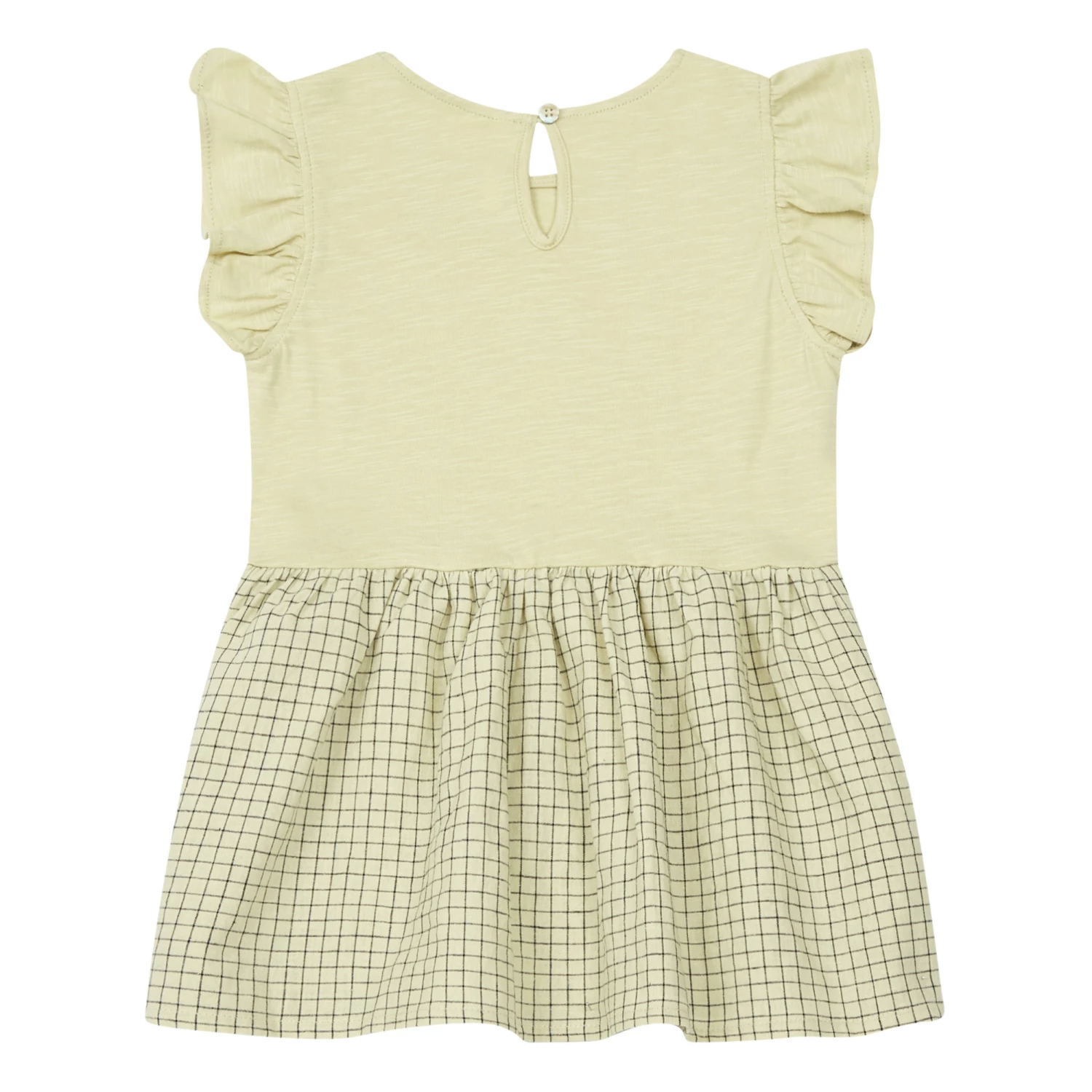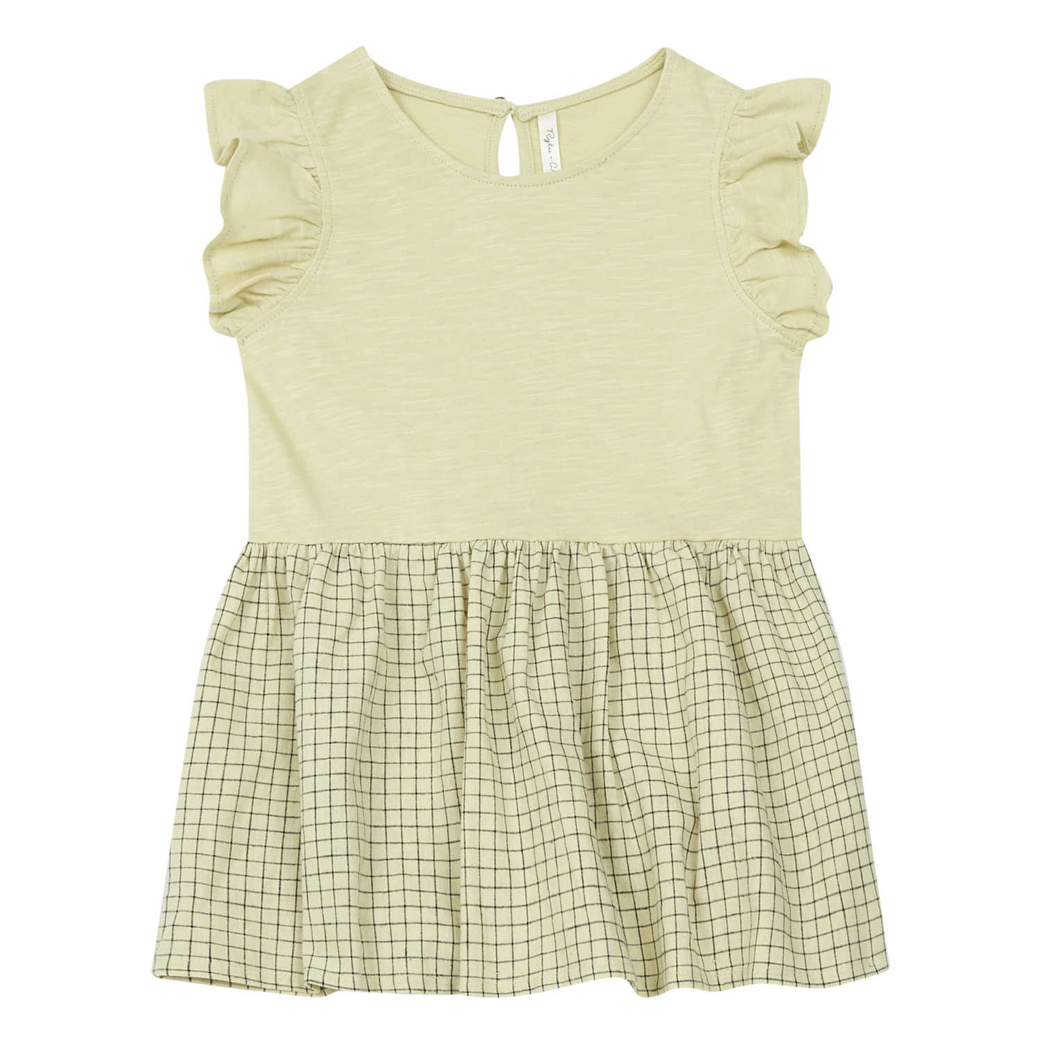 - Details : Checkered Print, Flared cut, Round neckline, Ruffle sleeves, Gathered waist, Keyhole back