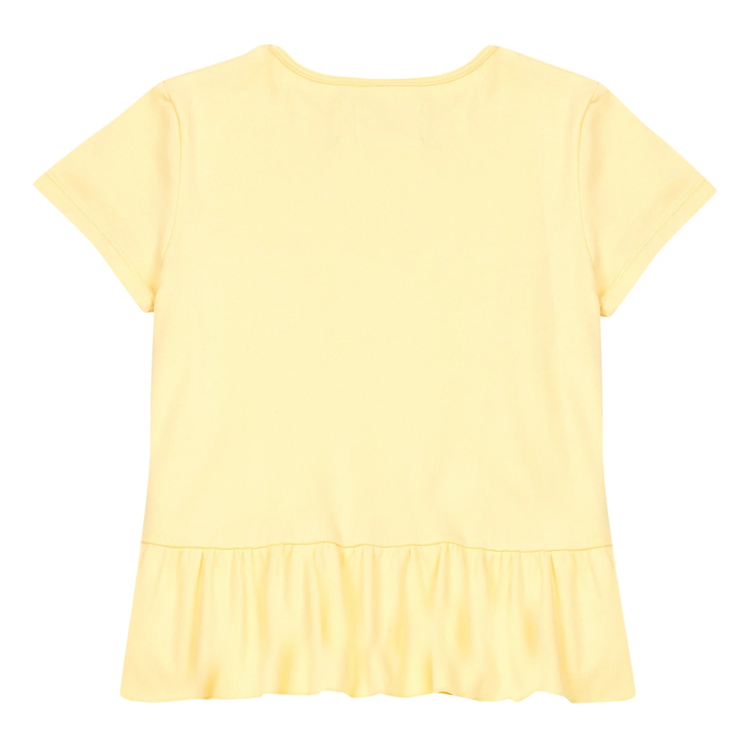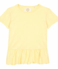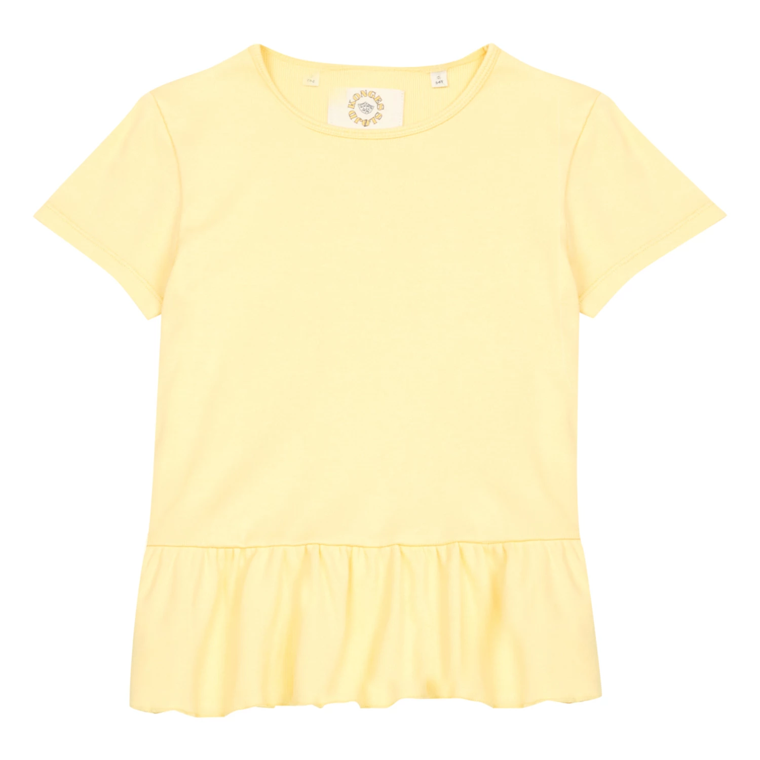 - Sewn-in logo , Crew neck, Short sleeves, Frilled edges