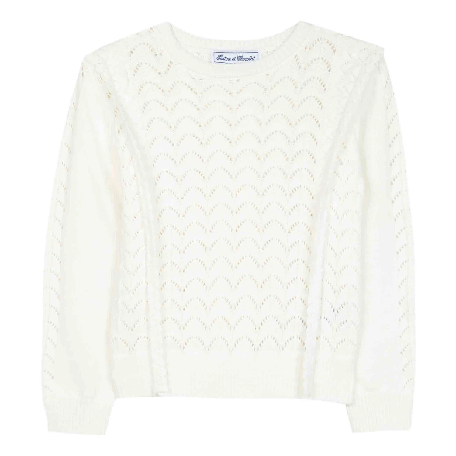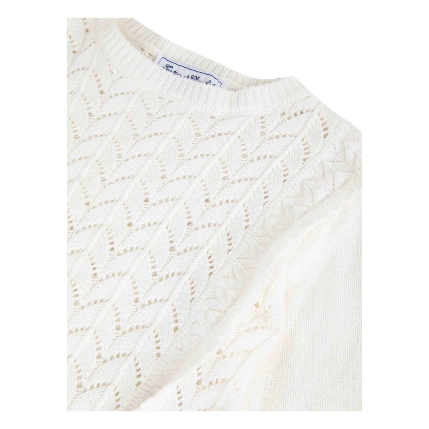 - Crew neck, Decorative band(s), Long sleeves, Ribbed cuffs, Decorative knit