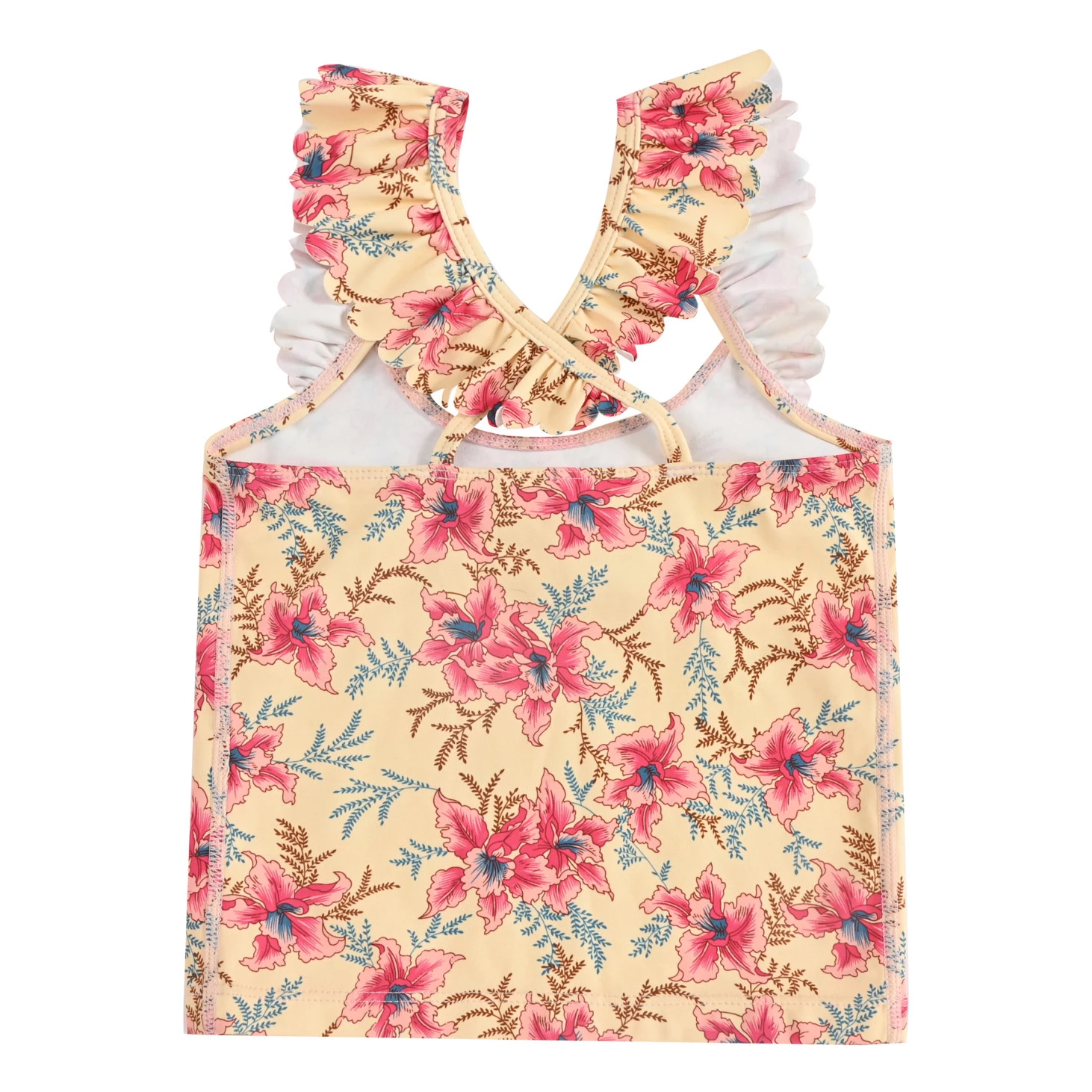 - Crew neck, Top stitched, Crossed back straps, Frilled straps