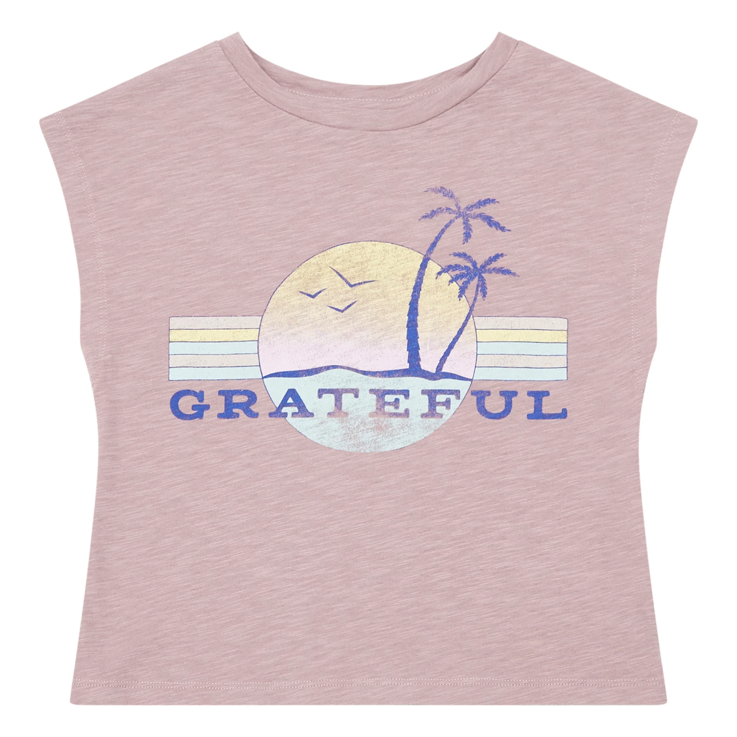- Crew neck, Top stitched, Print on front, Sleeveless, Comfortable