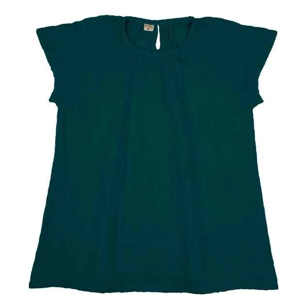 - Details : Round neckline, Short raglan sleeves, Button at the back, Keyhole closure, Gathered