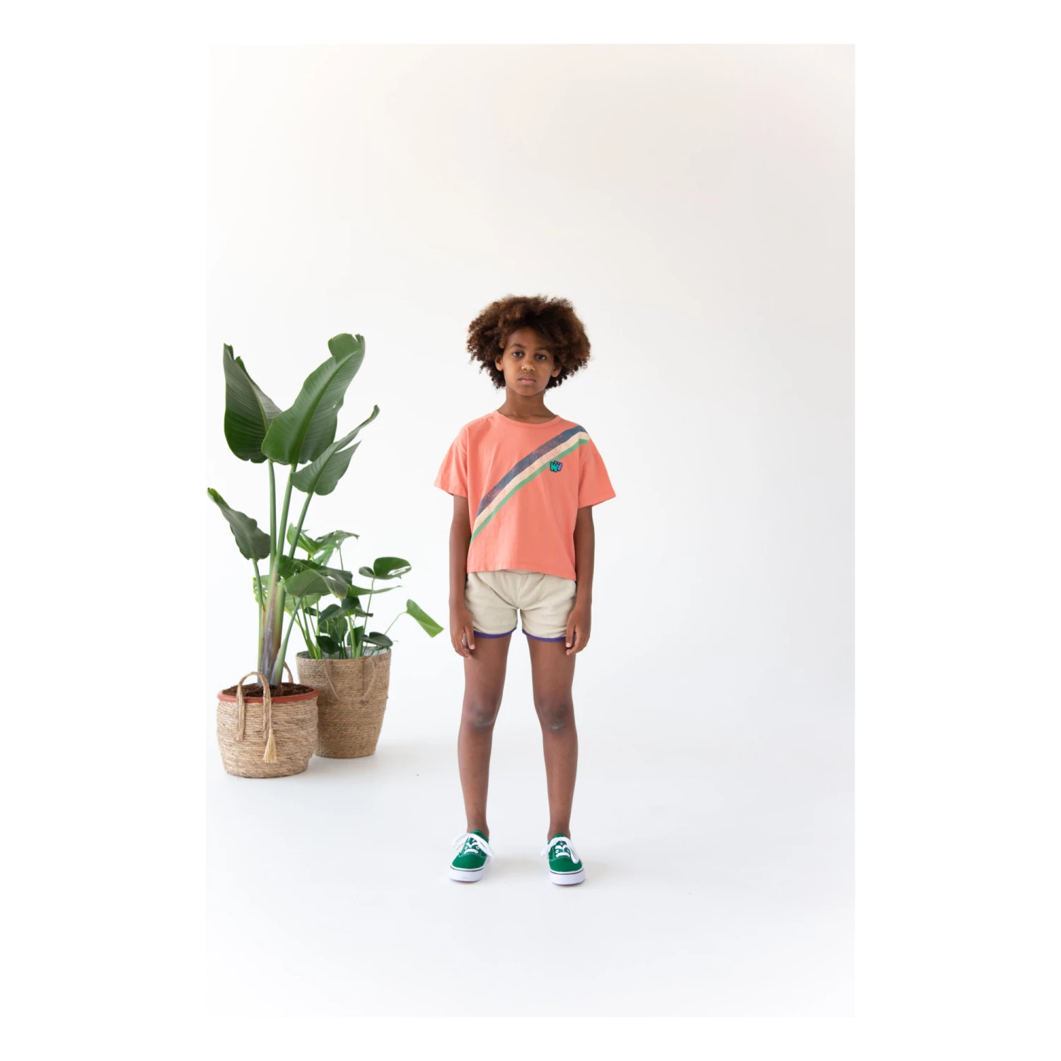 - Low armholes, Crew neck, Top stitched, Embroidered logo, Short sleeves, Print on front, Tricolour