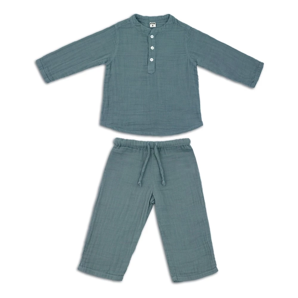 - Details : Tunisian collar, Long sleeves, Elastic waist, Ties for adjusting fit, Tab closing – 3 buttons