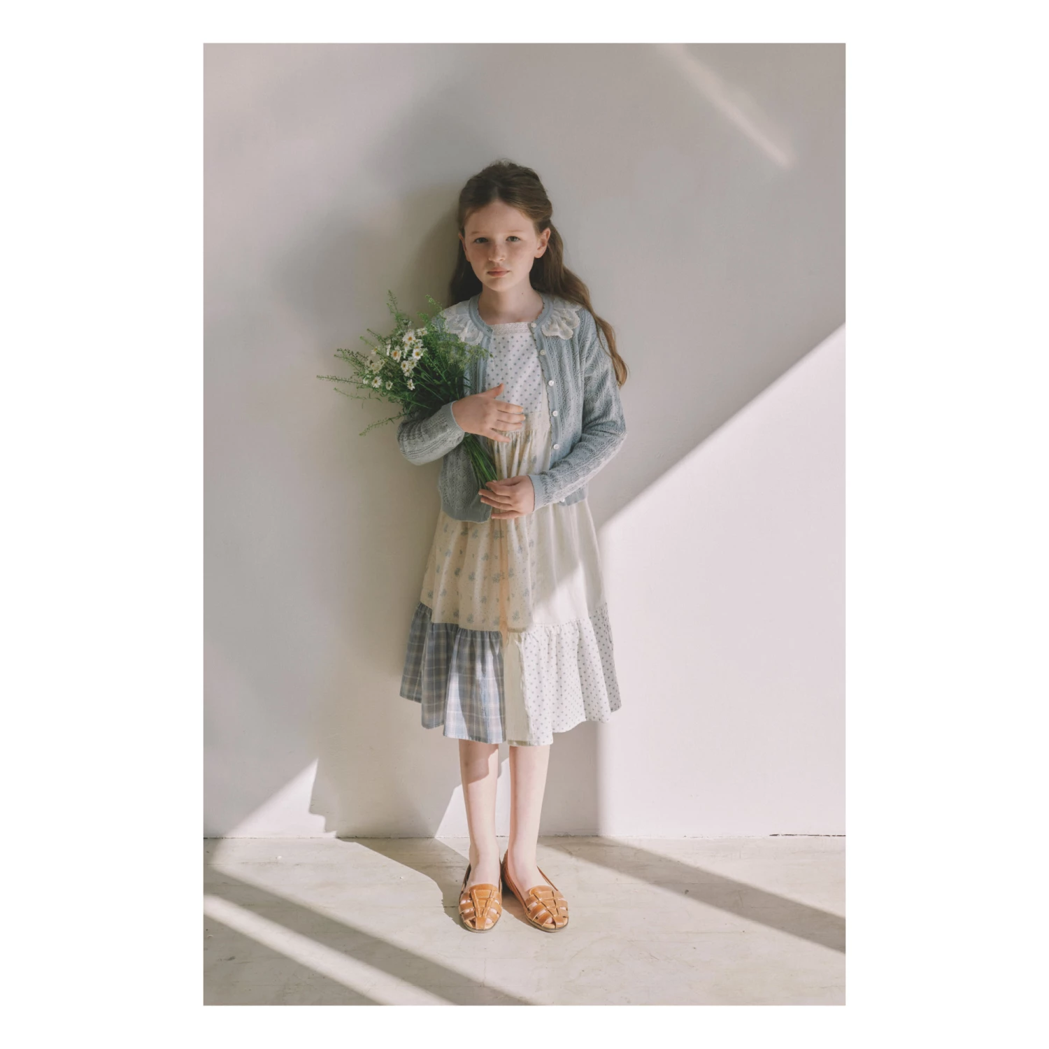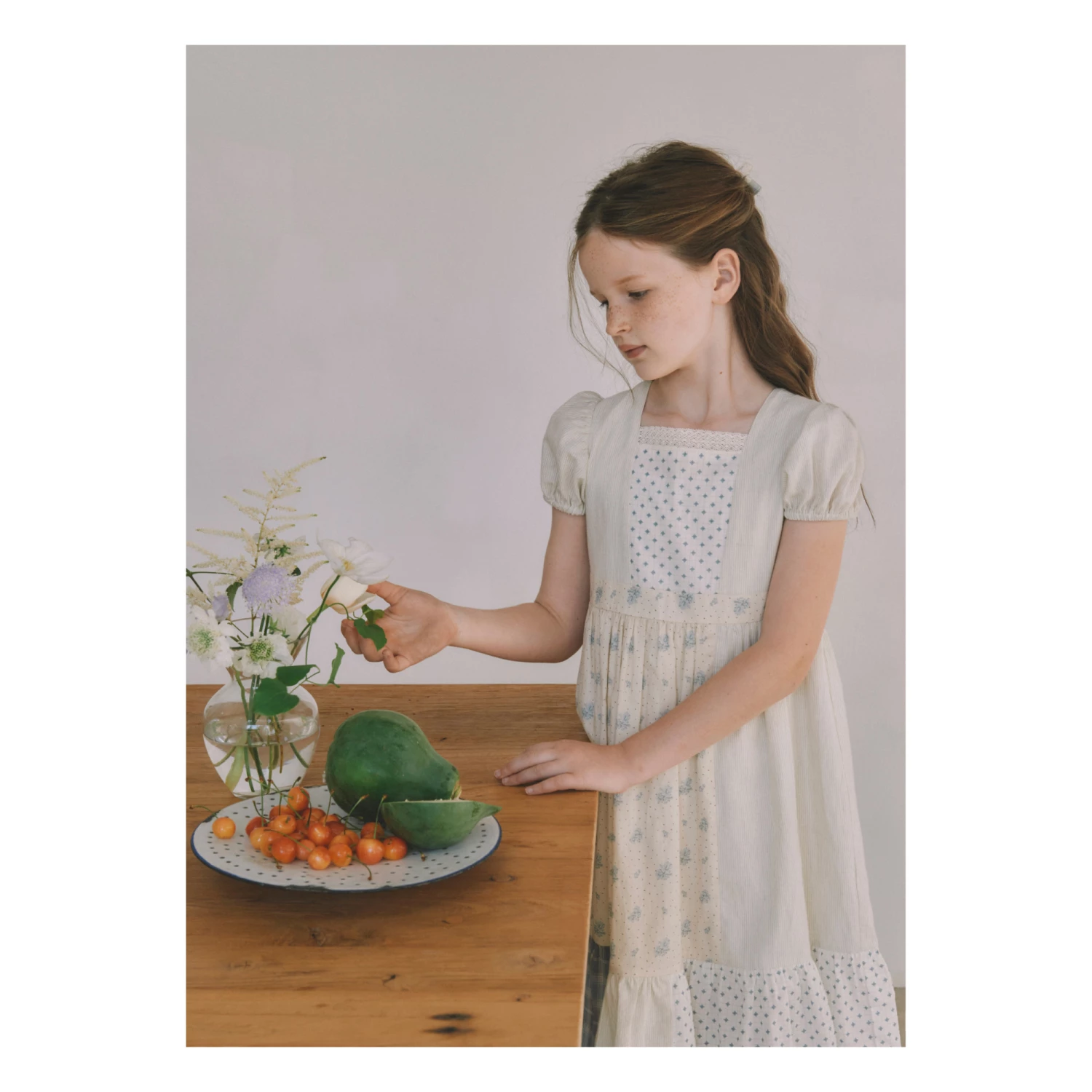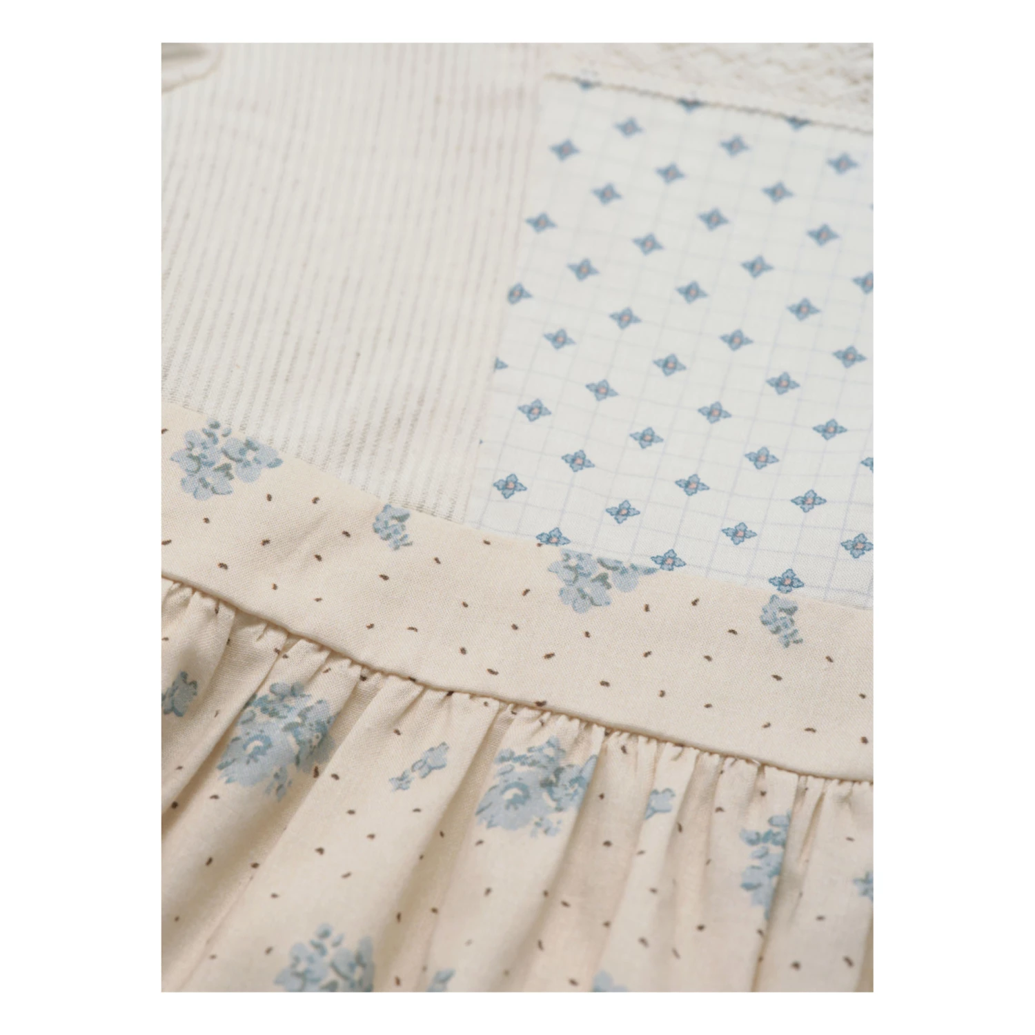 - Decorative bow(s), Contrast stitching, Lace details, Square neck, Balloon sleeves, Short sleeves, Pleated