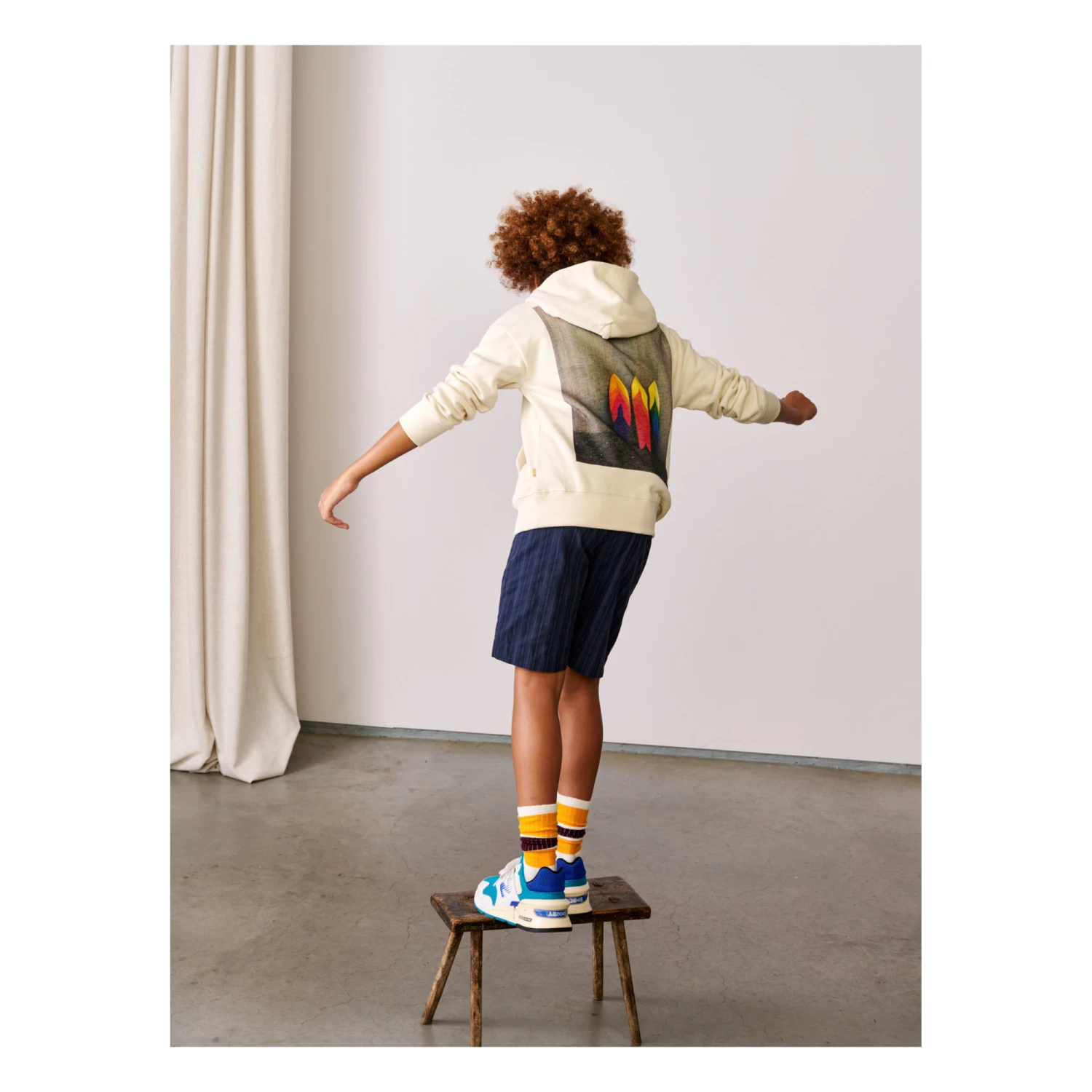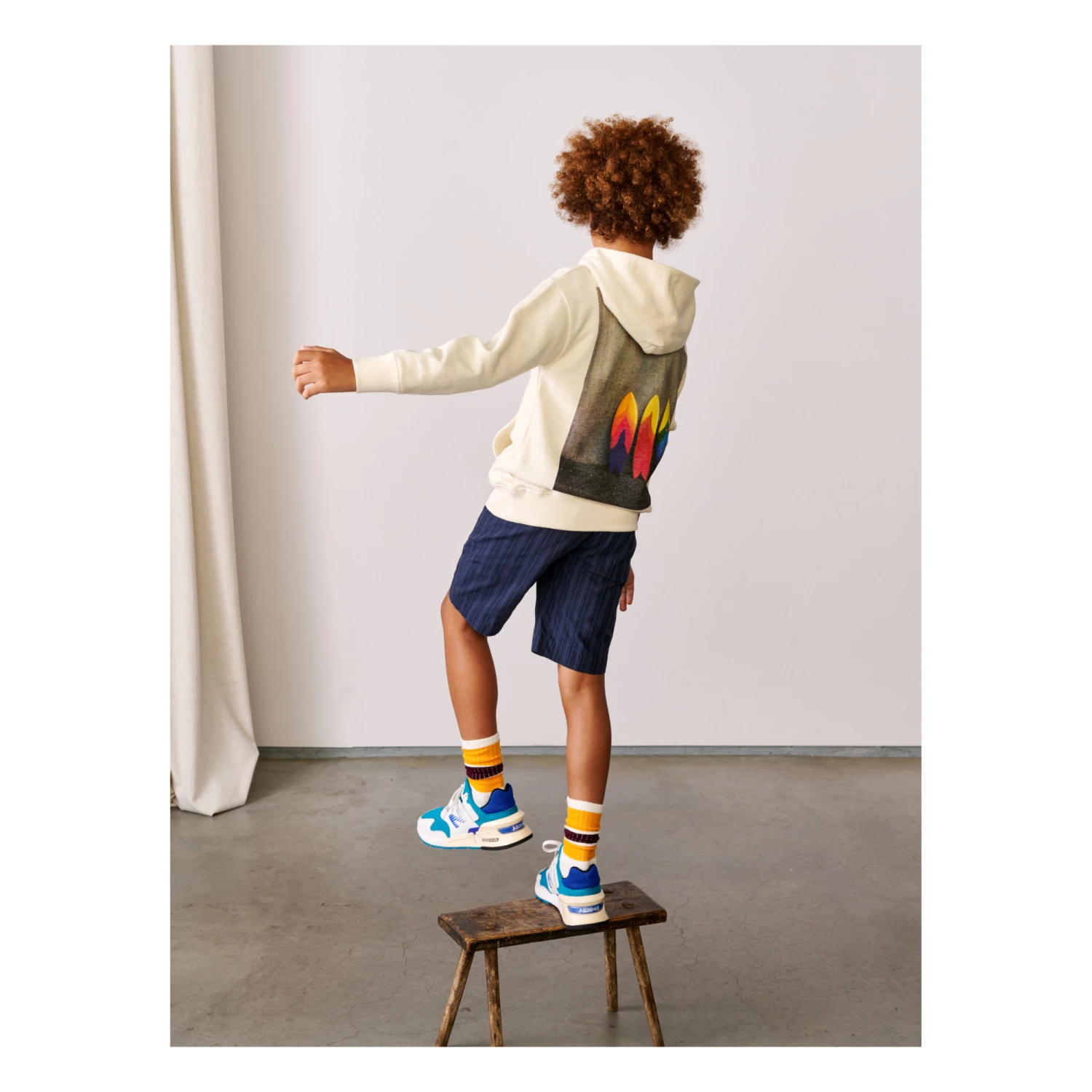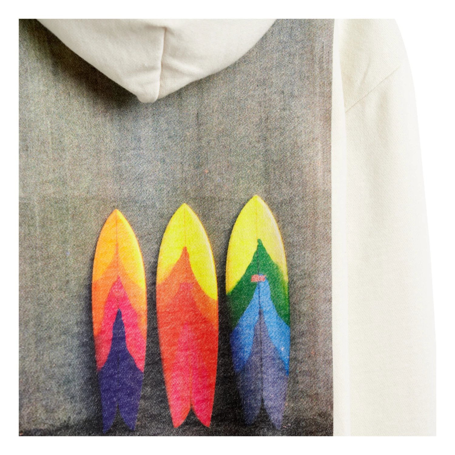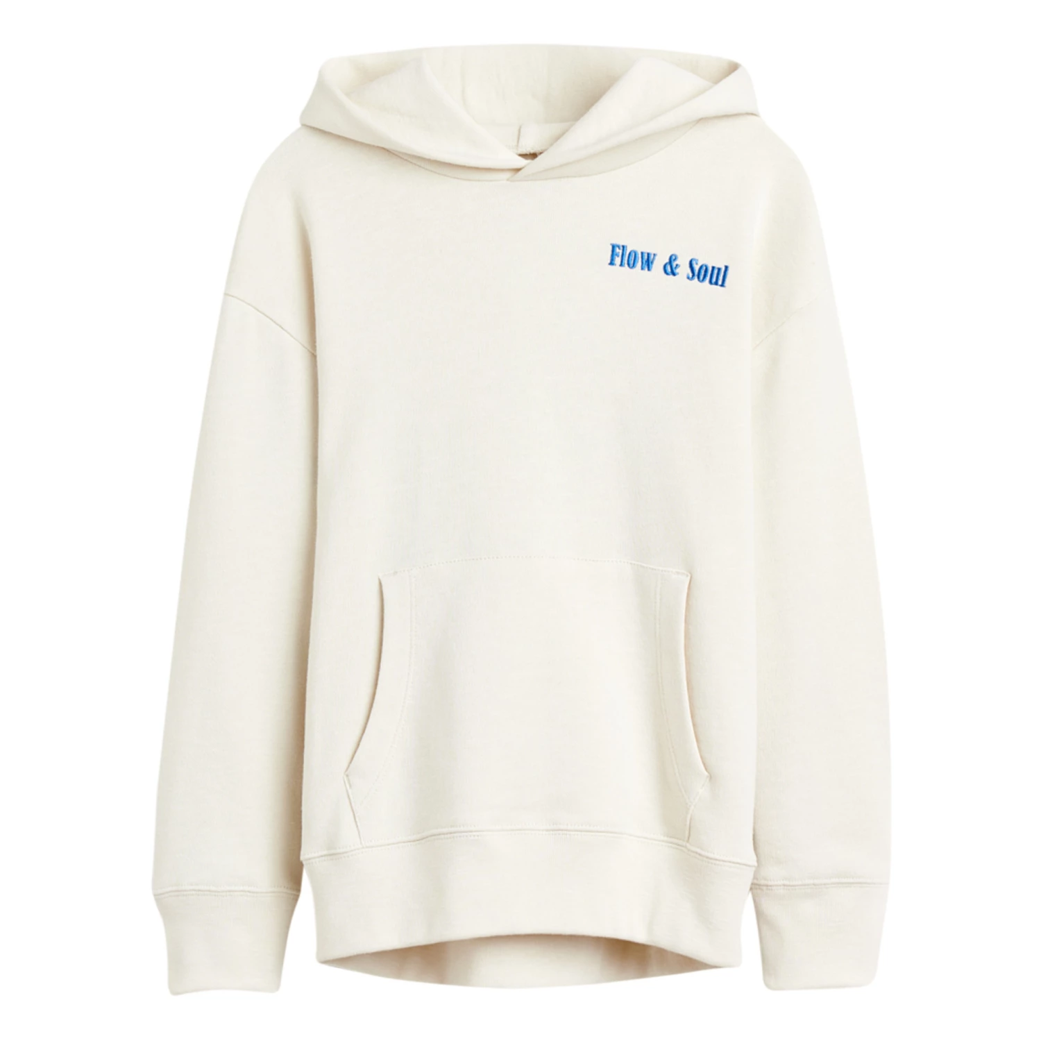 - Low armholes, Top stitched, Long sleeves, Kangaroo pocket, Ribbed cuffs, Print on back, Embroidery, Lined hood