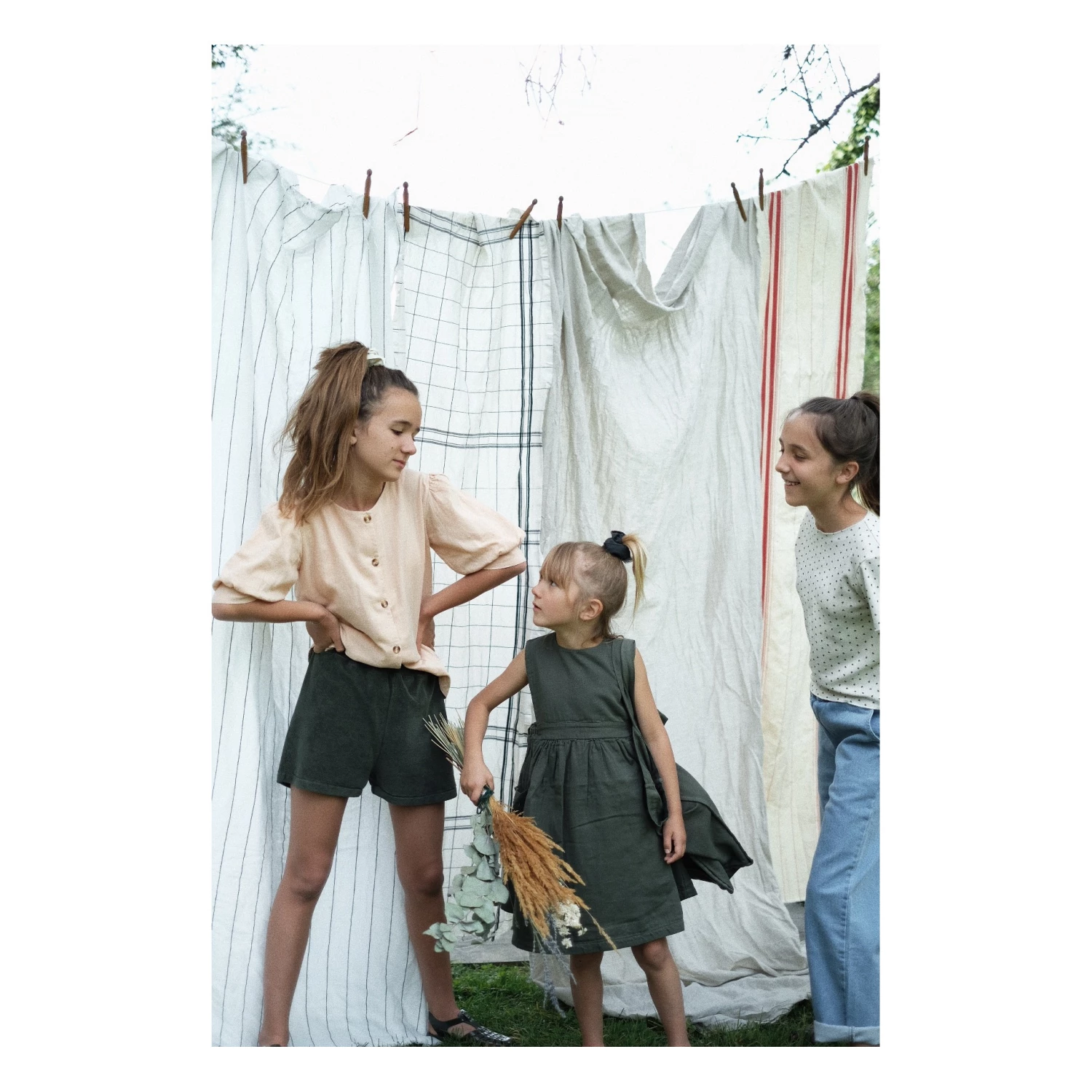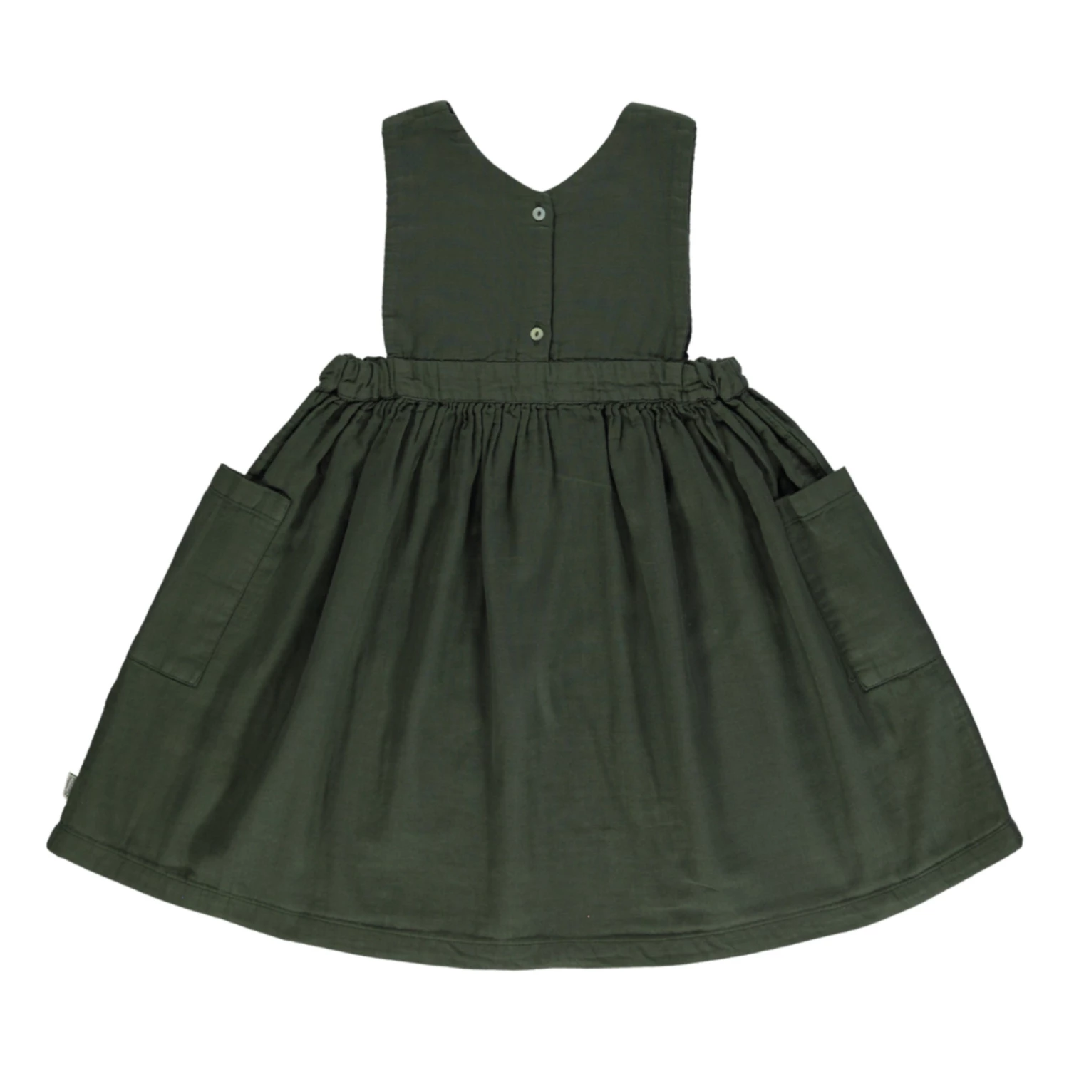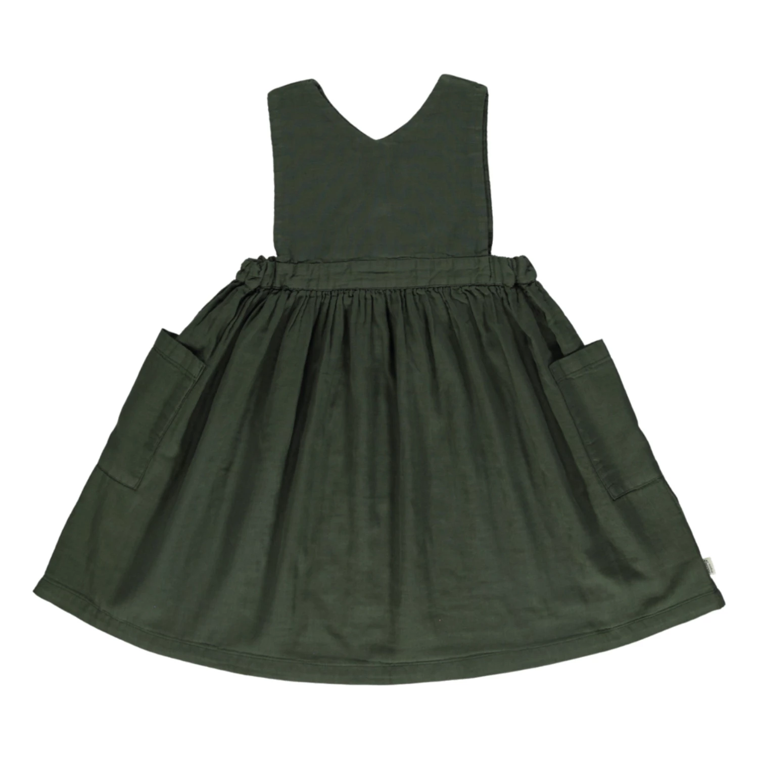 - Details : V neck, Elastic waist, Side pockets, Button back, Open-back, Flared cut, Lightweight and comfortable