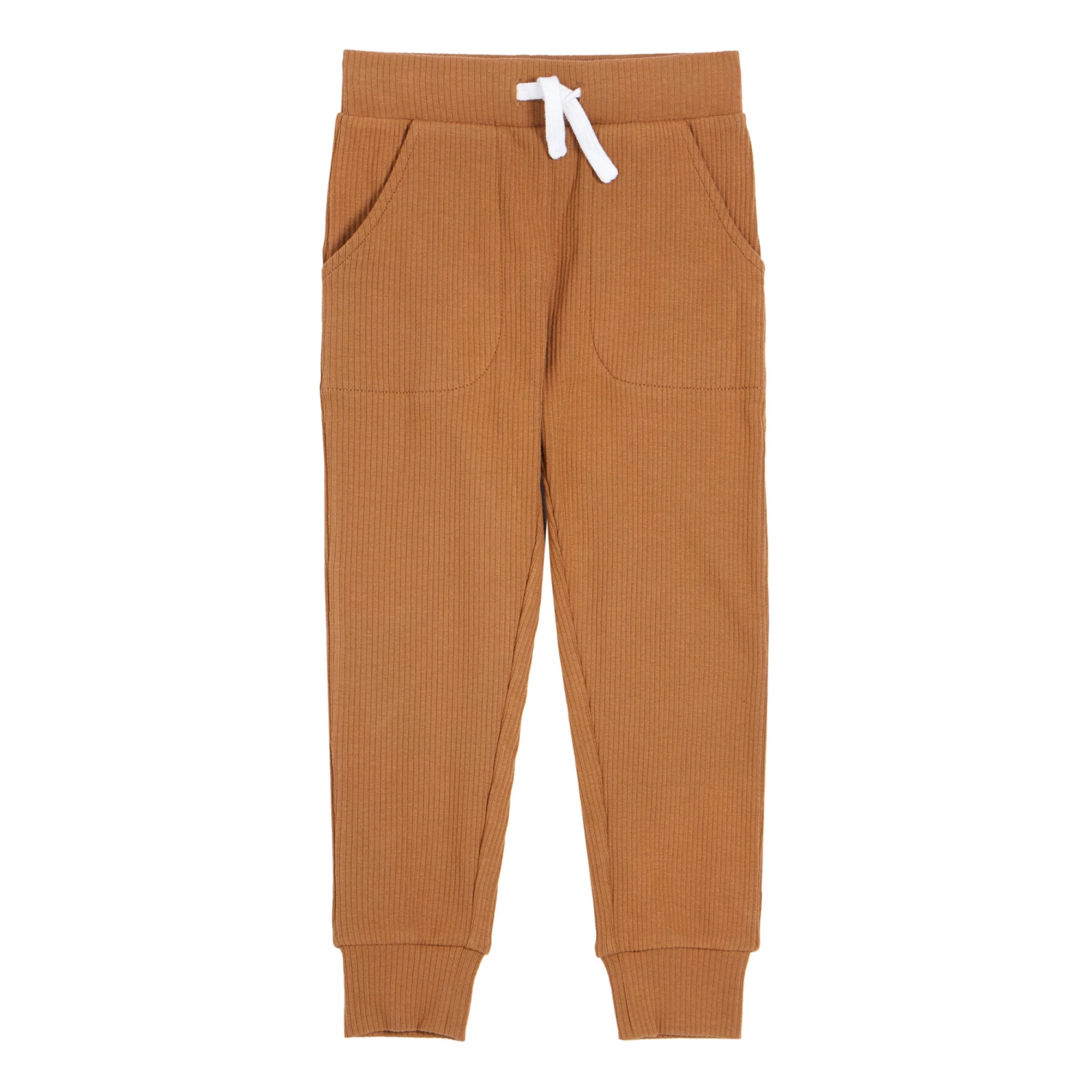 - Ribbed, Soft, Elastic at ankles, Front patch pocket(s), Elasticated waist, Sewn-in brand label, Comfortable