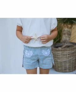 Deals ๐ Linen and Cotton Striped Lace Shorts Navy blue Zhoe & Tobiah Fashion Children ๐